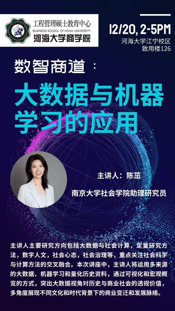 讲座通知|数智商道:大数据与机器学习的应用