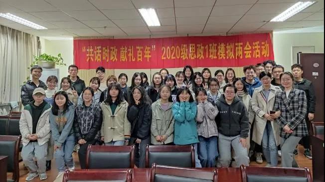 3月18日晚18:30,模拟两会活动在厚学楼1208如期举行,本次活动邀请胡雪海老师、王莹老师、朱小娟老师和马思琪老师担任评委,20级思政1班全体同学参加了本次活动。