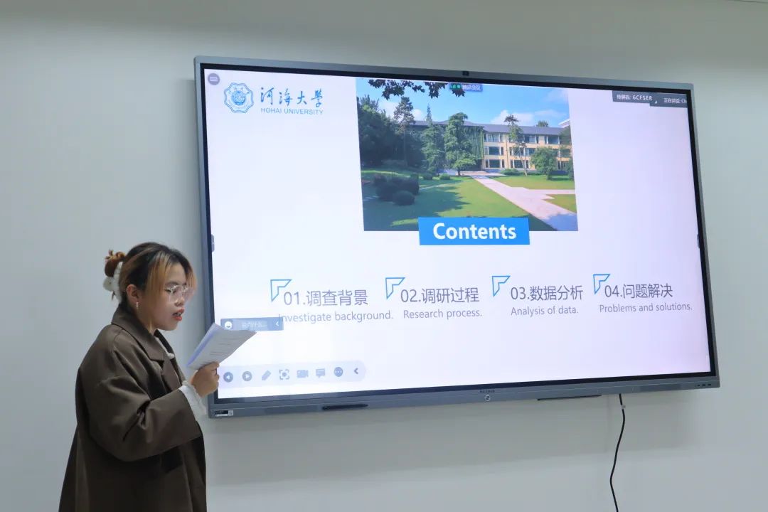 第二位进行答辩的是花宇馨同学,他们团队项目名称是《盘活地方特色资源,讲好新时代“大思政课”——南京高校开门办思政课经验寻访》。他们聚焦南京市多所高校,调研并总结各高校利用地方特色资源开展思政课教学的经验,调研成果具有可推广性与建设性。