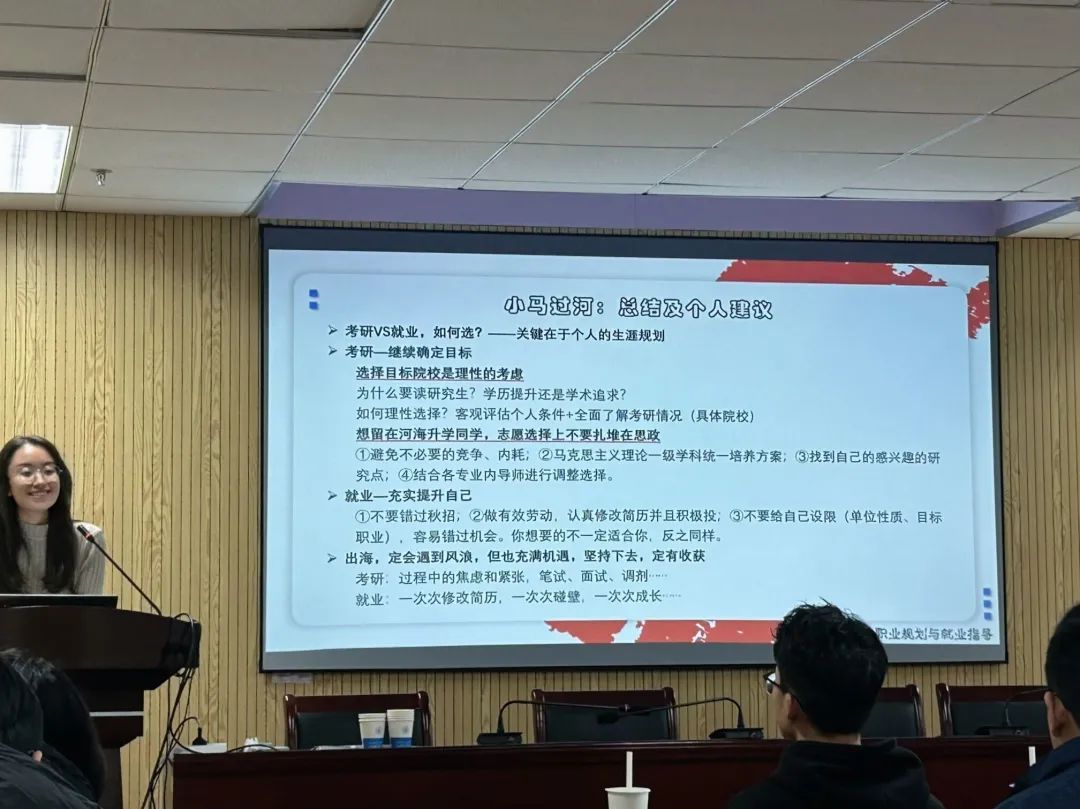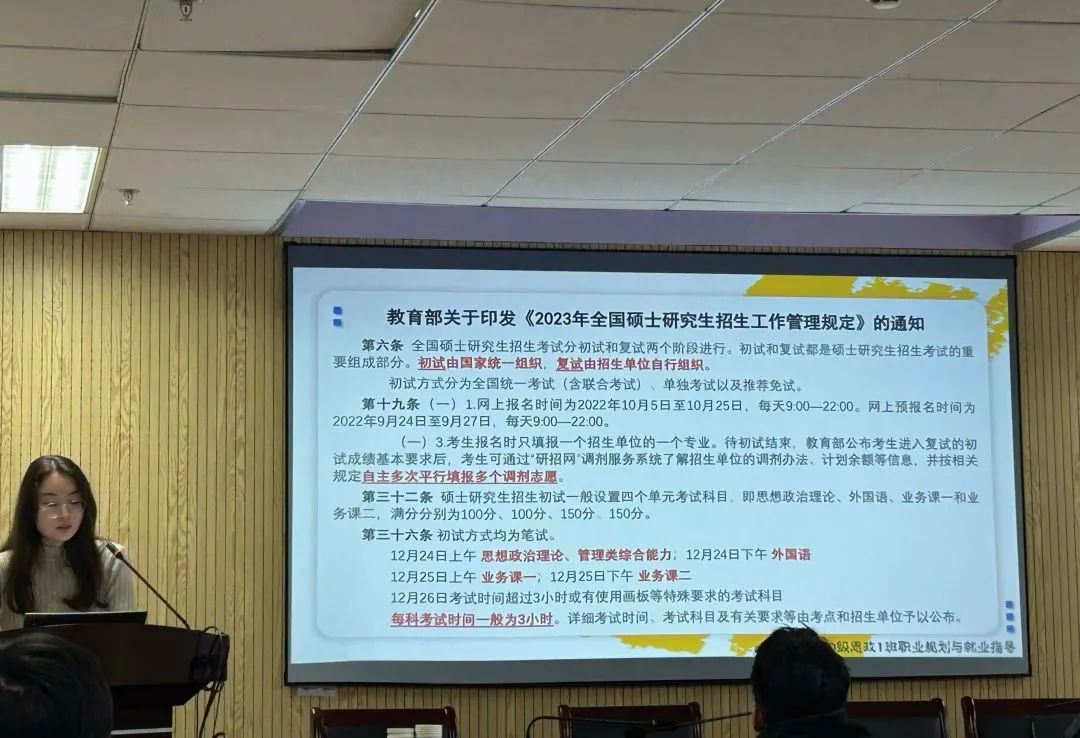 为帮助2020级本科生充分了解就业形势,储备考研知识,明晰规划方向,12月1日下午14:00-16:30,我院在厚学楼1208面向2020级本科生召开就业指导与考研分析会。会议由2020级本科生辅导员马思琪老师主讲,2020级全体学生参与。