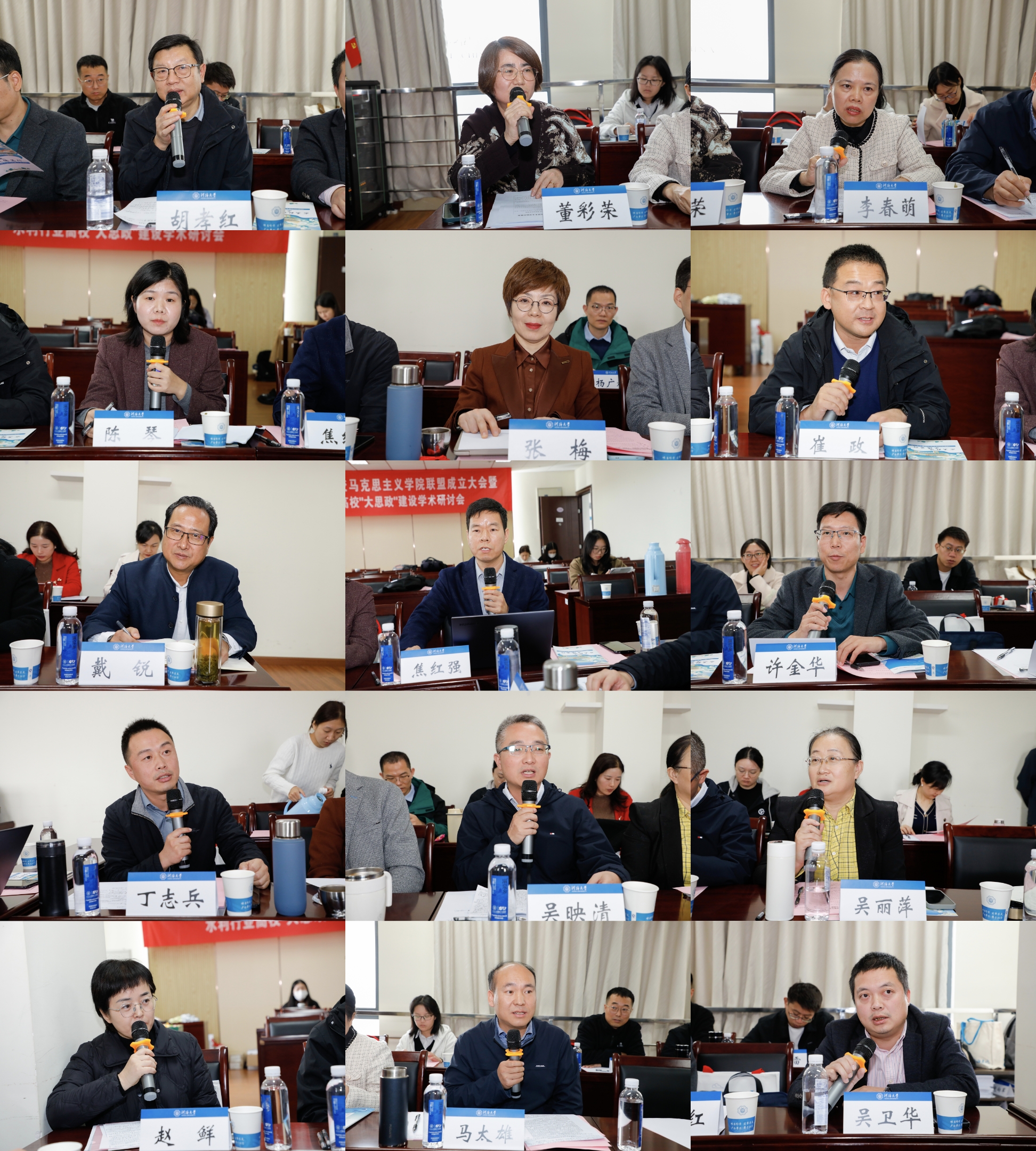 在学术研讨环节,各高校代表按序分享“大思政”建设经验。三峡大学马克思主义学院院长胡孝红介绍了学院的发展现状,以及围绕“长江大保护”开展的教学探索;安徽水利水电职业技术学院马克思主义学院副院长董彩荣介绍了学院概况,以及在水文化育人方面的特色工作;广西水利电力职业技术学院马克思主义学院院长李春萌分享了学院建设成果,以及大中小学思政课一体化建设实践;贵州水利水电职业技术学院马克思主义教学部德法教研室主任陈琴介绍了教学部概况,以及场景式教学等水文化育人举措;华北水利水电大学马克思主义学院院长张梅从学院概况、大思政课实践教学特色、学科建设、社会服务等方面进行了分享;河北水利电力学院马克思主义学院副院长崔政介绍了学院依托沧州本地红色资源与大运河文化,推进大中小学思政课一体化建设的特色做法;黄河水利职业技术大学马克思主义学院院长焦红强阐述了学院概况,以及学校“与校共生、与水共融、与生共情”的大思政课建设理念;江西水利电力大学马克思主义学院院长许金华介绍了学院建设情况,以及在“大思政”建设中的协作成果与突出贡献;江西水利职业学院马克思主义学院负责人丁志兵分享了学院发展现状,以及校内实践基地建设、校外合作等成果;四川水利职业技术学院马克思主义学院院长吴映清介绍了学院概况,以及思政基地建设、资源融合、课程创新等特色实践;山东水利职业学院思政部主任吴丽萍阐述了思政部运行现状,以及中高职衔接推进“大思政”建设的成果;山西水利职业技术学院思政部主任赵鲜介绍了思政部建设情况,以及课题研究、文化品牌等“大思政”建设成果;云南水利水电职业学院办公室主任马太雄从机制建设、典型模范引领、品牌活动等方面介绍了“大思政”实践;浙江水利水电学院马克思主义学院副院长吴卫华介绍了学院结合地方水文化开展的思政创新实践。