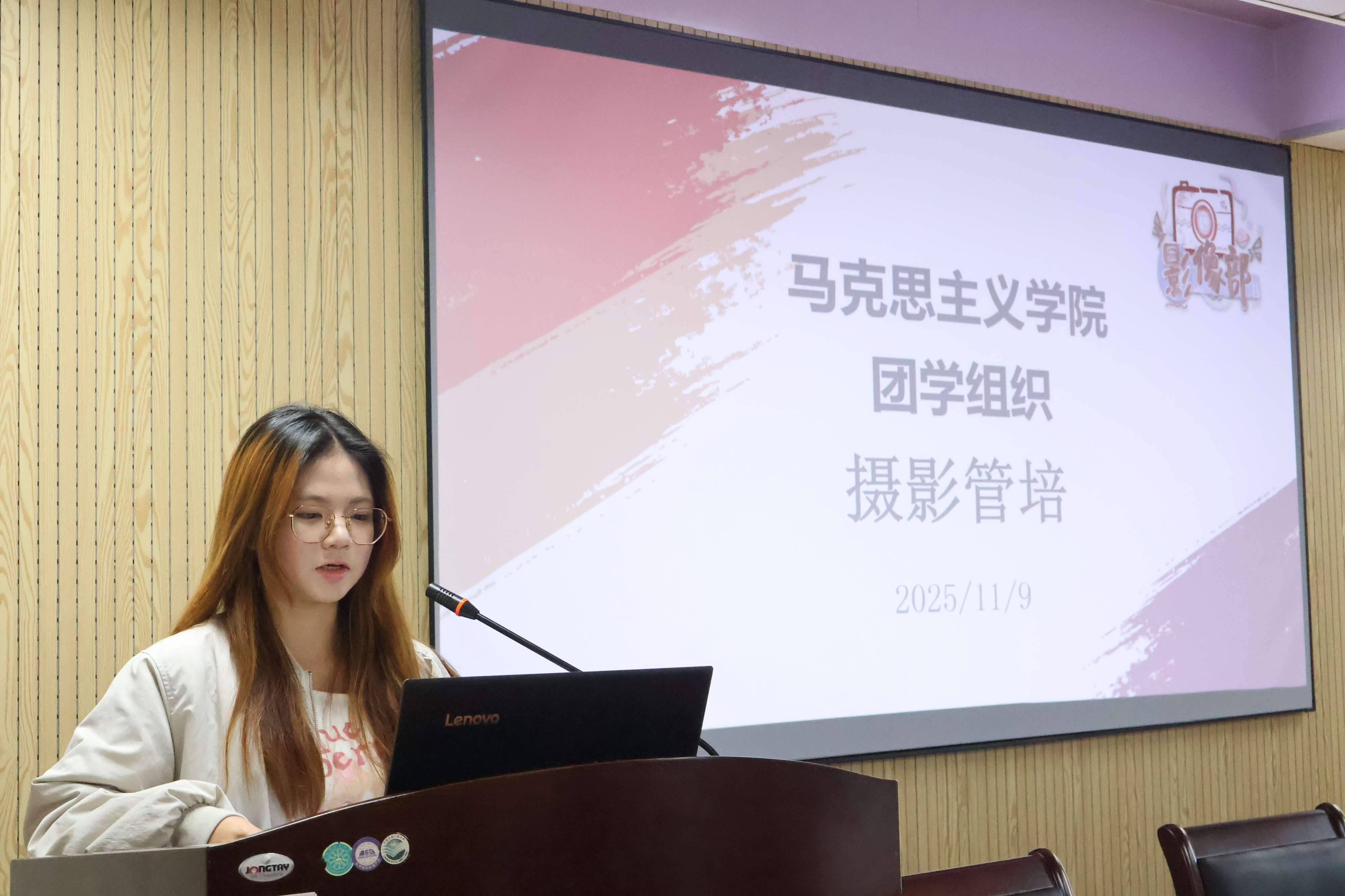 新媒体中心影像部部长刘乐淇进行活动照片拍摄的讲解,主要从照片要求、图片处理、工作流程三个方面展开。在图片要求方面,她指出图片拍摄应当从主题、人物、流程、构图等方面进行综合考量。对于图片的处理,她主要传授了一些照片压缩方面的技巧。最后,她系统介绍了影像部的具体工作流程。
