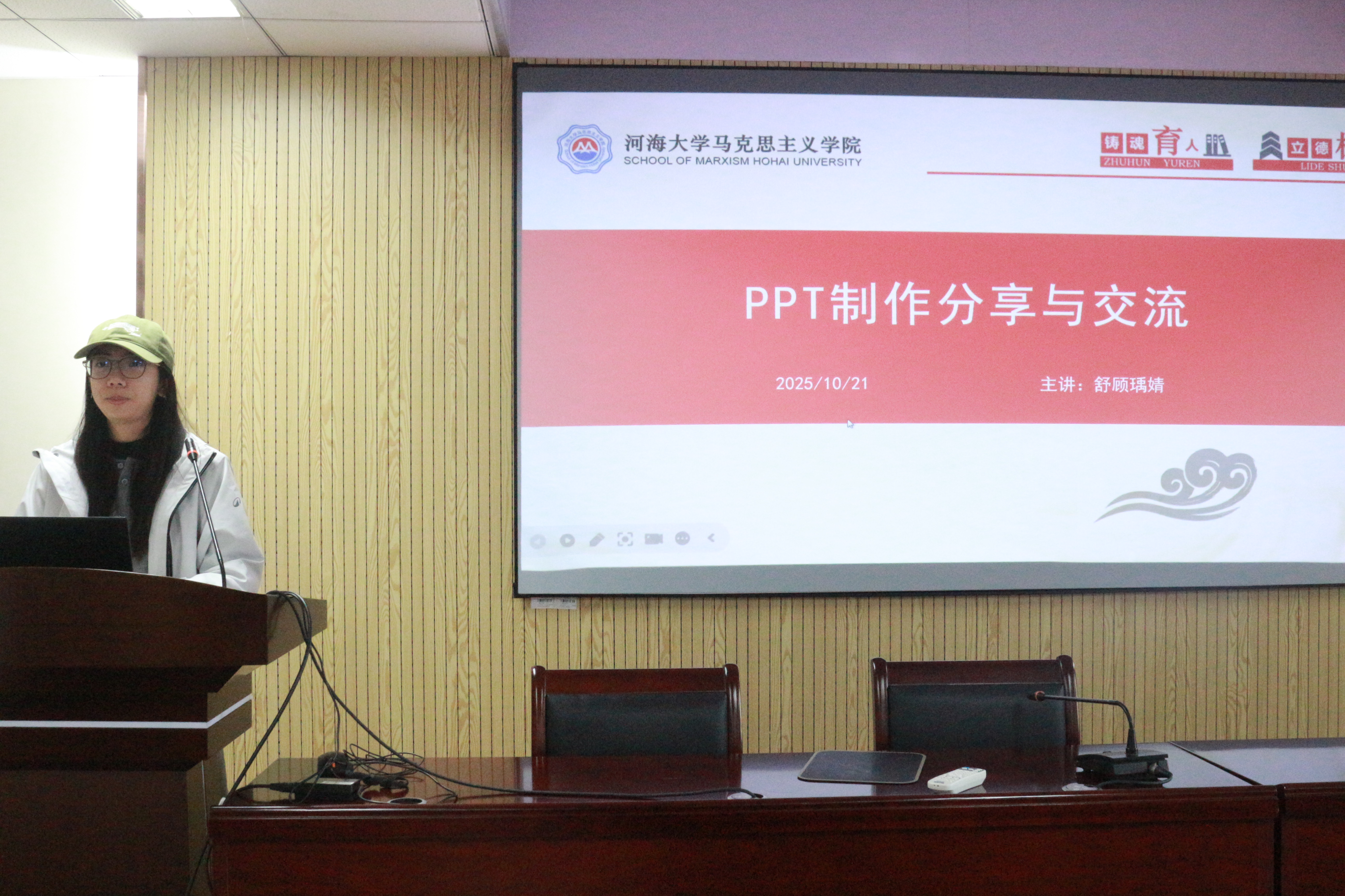 研究生会文体部干事舒顾瑀婧进行了PPT制作与优化的讲解。首先,她推荐几款相关的软件。其次,她将PPT划分为两类,分别讲述了其特点与要求,并提出了从统一、对齐、清晰、对比四个原则提出要求。最后,她给出了制作PPT的几点建议并介绍相应的具体方法。
