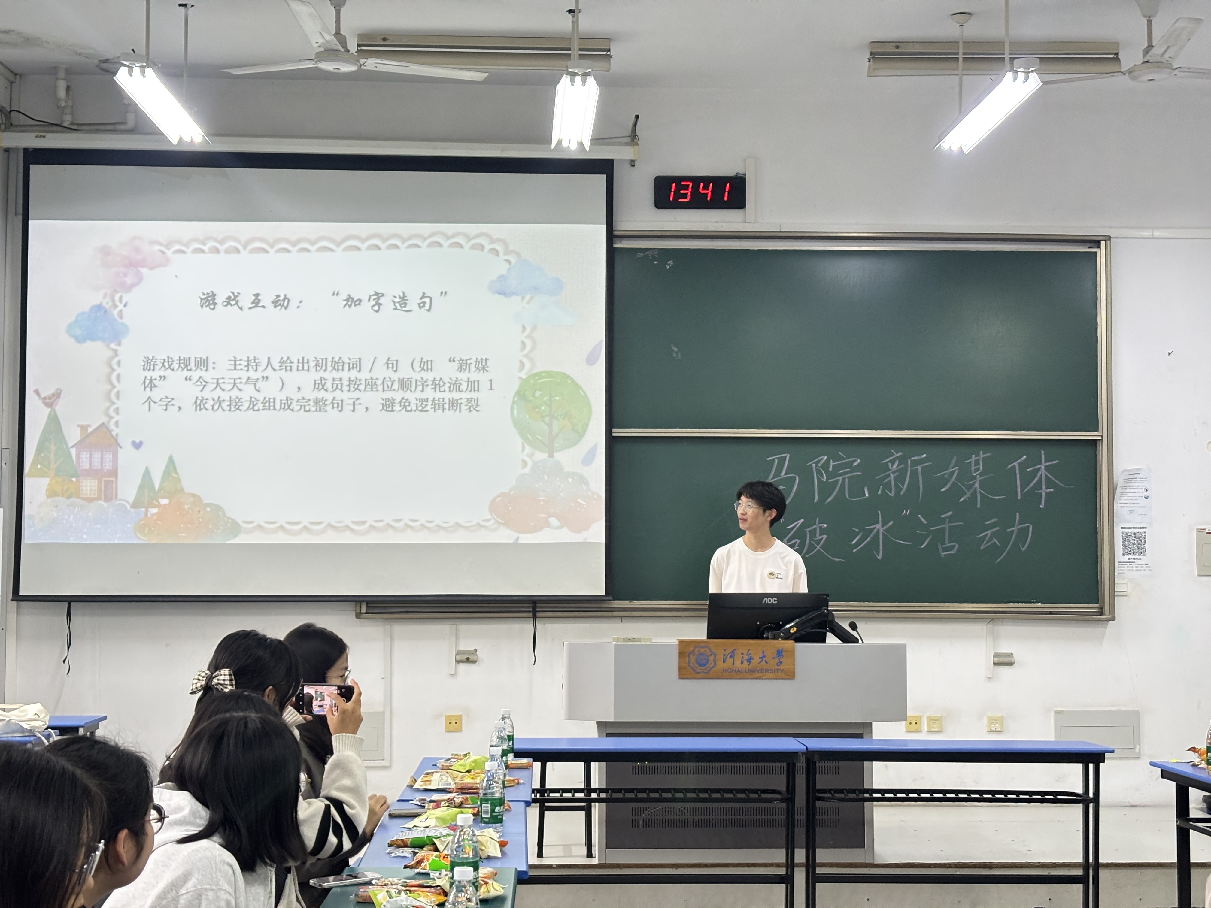 加字造句环节展现了成员们的语言智慧。从主持人最初给出的“破冰大会”四个字开始,每个成员接龙加字时都绞尽脑汁,既要保证逻辑通顺,又要富有创意,不仅考验了语言组织能力,更展现了创造力的重要性。