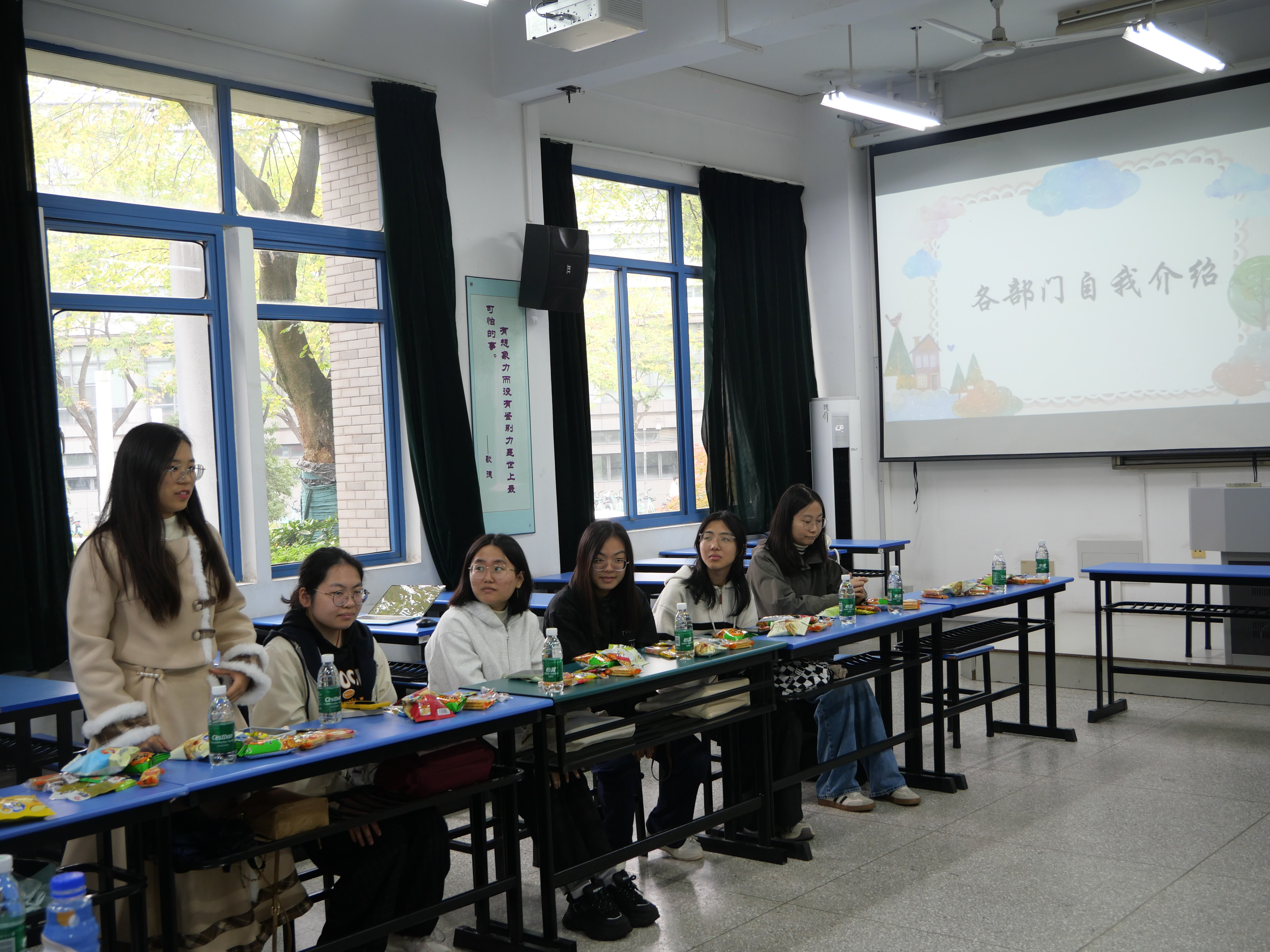 活动伊始,编辑部、影像部、视觉设计部、采编部四个部门成员依次进行自我介绍,从姓名、家乡到兴趣爱好,一个个简短的介绍饱含真诚,大家迅速地拉近彼此的距离,增进相互之间的了解。