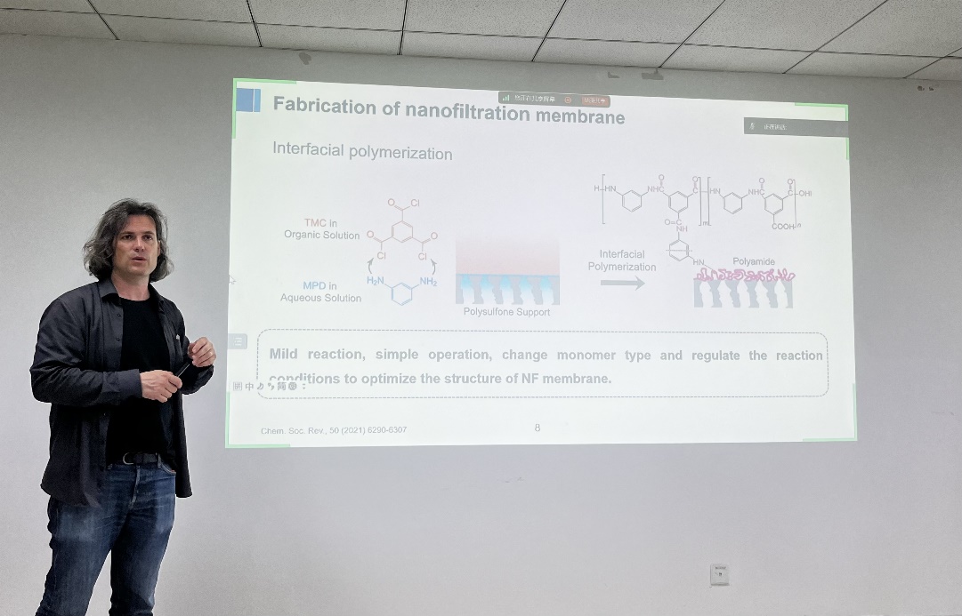 参加交流活动的学院老师和同学们积极参与讨论,Bart Van der Bruggen教授和赵严博士一一给与了热情解答。通过此次会议,帮助我院师生对界面聚合技术制备聚酰胺(聚酯)膜在疏松纳滤方面的应用、通过电场辅助离子控制设计高效Li+选择性膜的制备和应用有了更深刻的认识。