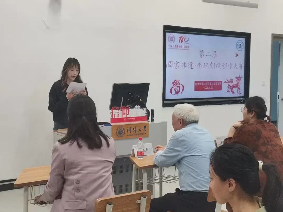 4月26日,由材料科学与工程学院承办的开云电竞网第三十七届校园文化艺术节活动之第二届国家非遗·金坛刻纸创作大赛在常州校区2号楼E104圆满举办。本次活动邀请到国家级非遗项目金坛刻纸代表性传承人杨兆群老师、金坛刻纸市级传承人何雅雯老师进行现场授课,吸引了来自开云电竞网9个学院的40余名学生参赛,材料院团委书记蒋旦悦老师、辅导员张阳阳老师参加现场活动。学院学生会精心组织,活动通过理论讲解、实践创作等环节,将非遗技艺与青年创新思维深度融合,现场创作出十余幅精美作品。
