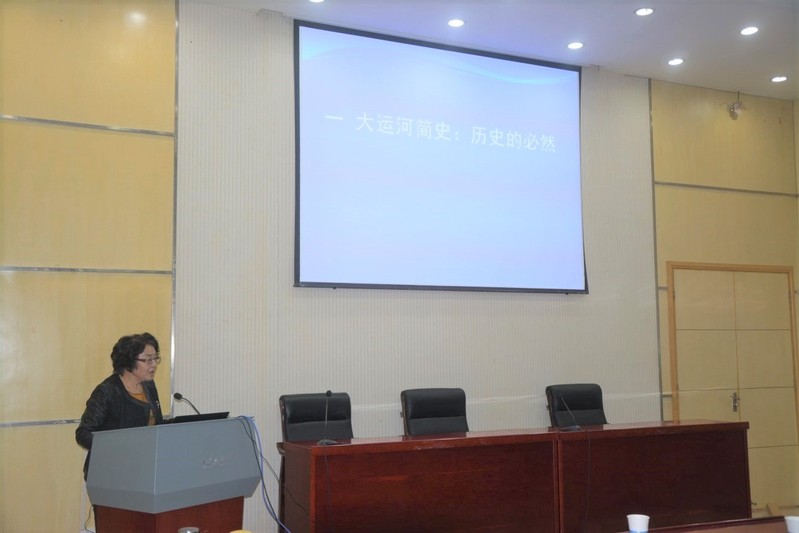 之后,谭徐明总工从大运河的使命出发,给同学们详细的讲述了大运河的纵向线路,让同学们对大运河的历史演变过程有一个清晰地了解,使同学们认识到大运河的发展对于国家、社会、经济、政治发展的重要的历史价值。接着谭总工从大运河的规划成就、技术成就及运河工程与区域自然环境的相互作用三个方面介绍了大运河的核心价值,并列举了一些大运河遗产的保护策略。