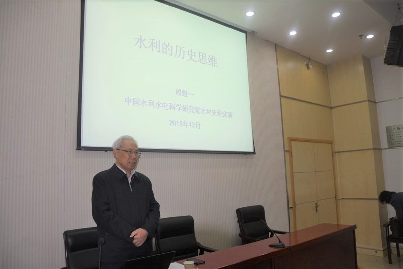 2018年12月18日上午九点,农业工程学院 “水利史·水文化传承周”学术报告会于开云电竞网本部闻天馆104举办。本次报告会由农业工程学院副院长陈菁教授主持,邀请到了来自中国水利水电科学研究院的周魁一教授、谭徐明总工和李云鹏主任,我院部分教师代表和本科生、研究生一起聆听了本次报告。