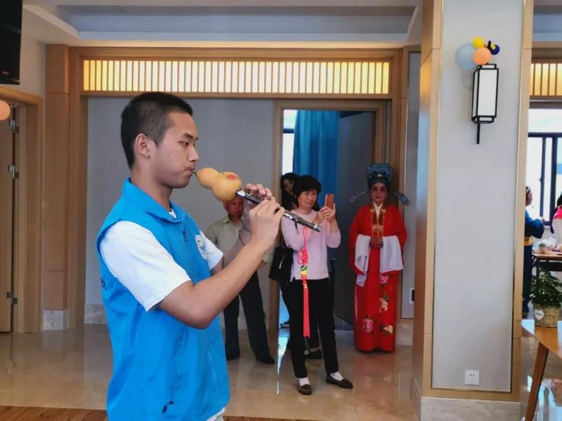 上午九点半,表演正式开始,第一个节目是18级农水二班志愿者白胤豪同学带来的葫芦丝曲目《竹林深处》,悠扬动听的葫芦丝一响起,刚刚还嘈杂吵闹的大厅一下子安静了下来,在场的所有人都被深深吸引,仿佛身临其境一般;接下来,志愿者韦琦带来的横笛表演同样精彩,欢快的笛声灵动活泼,瞬间让在场听众响起掌声,将现场气氛逐步推向了一个高潮。