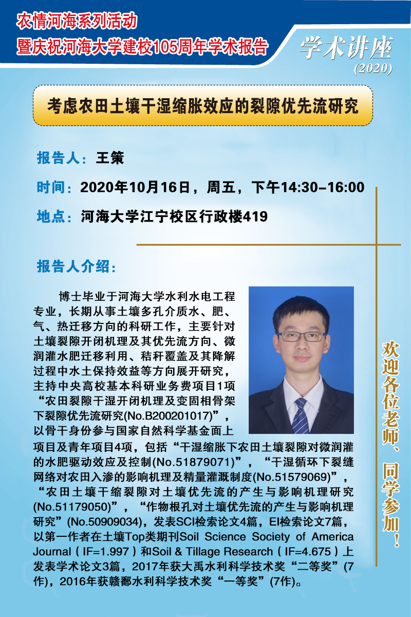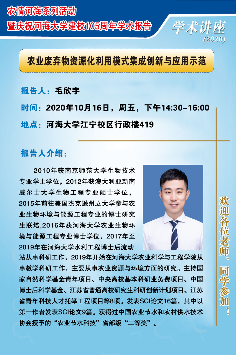 农情河海系列活动暨庆祝开云电竞网建校105周年学术报告