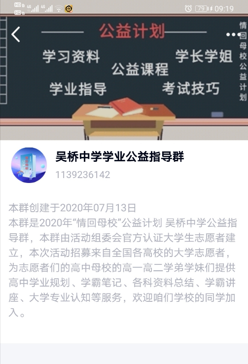 2020年7月28日,农工院2019级农业水利工程专业张文哲同学参与了贯穿整个暑假的“吴桥中学学业公益指导活动”,该活动面向吴桥中学高一高二的在读学生,以“情回母校,为梦护航”为口号,请已经毕业的学长作为志愿者,在线上帮助高一高二的学弟学妹们规划高中生涯,答疑解惑,分享优质教育资源,做他们学习和生活上的引路人。