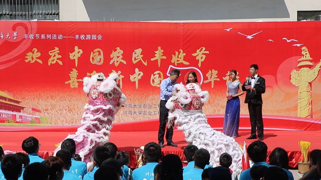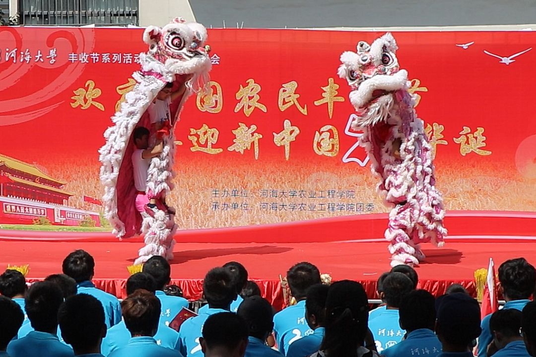 农业工程学院李同春院长为“河海雄狮点睛”,开启庆祝活动的序幕。农业工程学院党委陈毓陵书记为活动致辞,寄语未来并预祝活动圆满成功。“庆丰收、迎华诞”文艺演出内容精彩,形式活泼。