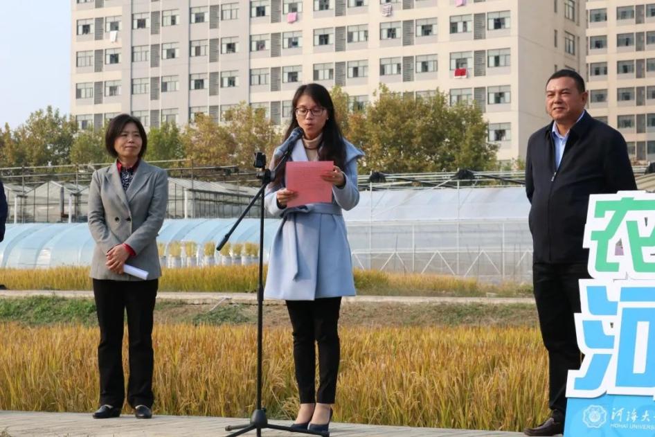 之后由学生处副处长长汤鸣鸿发表讲话。汤处长表示,此次“丰收节”活动不仅动员了农工院的师生参与,而且影响广泛,使全校师生都参与进来重视“三农”问题、围绕“三农”问题贡献青春力量。全校积极开展多种形式诸如社会实践、主题党团日活动,师生全方位多角度地参与,更全面地了解国情、社情、民情。积极开展劳动教育,是教育理念和教育实践的巨大进步,是更加注重人的全面发展的重要体现。汤处长指出,我校学生工作一向高度重视素质教育、能力培养和习惯养成,劳动教育也包含其中。节水园区不仅是研究生和专家教授进行课题研究的沃土,也是我校青马工程等学生骨干群体进行集体劳动、提升自我的场所。通过多种形式的劳动教育,同学们会对勤俭节约有着更深刻的认同和体会,更能够将劳动意识和节约习惯贯穿于生活细节中。