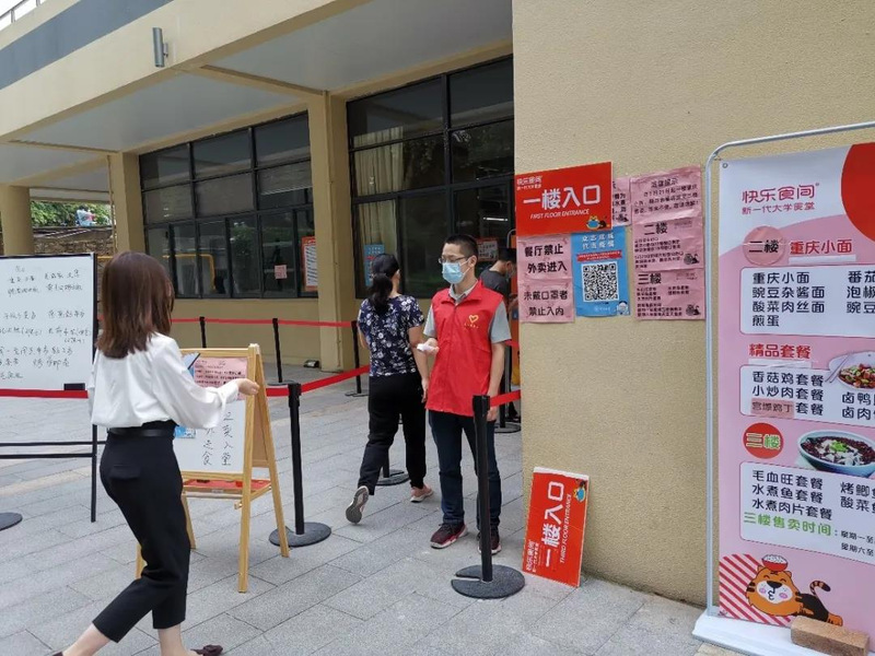 5月、6月,学校迎来毕业生返校高峰。疫情防控工作任务艰巨,丝毫不能懈怠,像食堂这类餐饮公共场所更是防疫主战场。由于食堂人手有限,在接到学校后勤处需要志愿者的需求后,学院16级在校本科毕业生积极响应,志愿担当服务者,每日准时到岗,在食堂出、入口处对就餐师生进行体温检测、防疫码检查等工作。缓解了食堂防疫工作的压力,为学校的疫情防控工作贡献了力量。