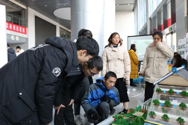 在此次闭幕式中,我院就近期举办的“碧空无垠,节能无限”节能减排模型制作大赛中前四名获奖优秀作品进行了展示。在讲解员的详细解说下参观同学对展出模型的工作原理、制作目的及创新点有了一定程度的了解。此外,讲解员拓展性地讲述了我院曾获国家级奖项的“水肥保姆”创新项目以及近期举办的大型学术交流活动,吸引了大量同学参观。