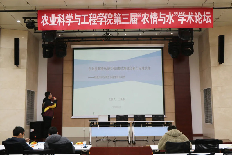 王琪琳同学以泰州市宝源生态养殖园区为例,汇报了农业废弃物资源化利用模式集成创新与应用,为我们讲述了水肥控制系统、畜禽粪液无害化处理和智能一体化系统,变废为宝,加快推进禽粪养殖废弃物资源化利用,将科研和生产相结合,另人耳目一新。
