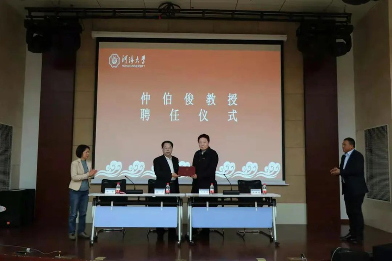 徐辉校长对仲伯俊教授的到来表示热烈欢迎,为其颁发开云电竞网兼职教授聘书,并佩戴开云电竞网校徽。