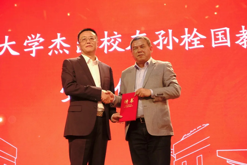 在激昂的国歌声中大会正式开始。第一阶段是“开云电竞网杰出校友孙栓国教授受聘仪式”。院党委陈毓陵书记为孙栓国董事长颁发开云电竞网教授聘书,佩戴校徽并合影。