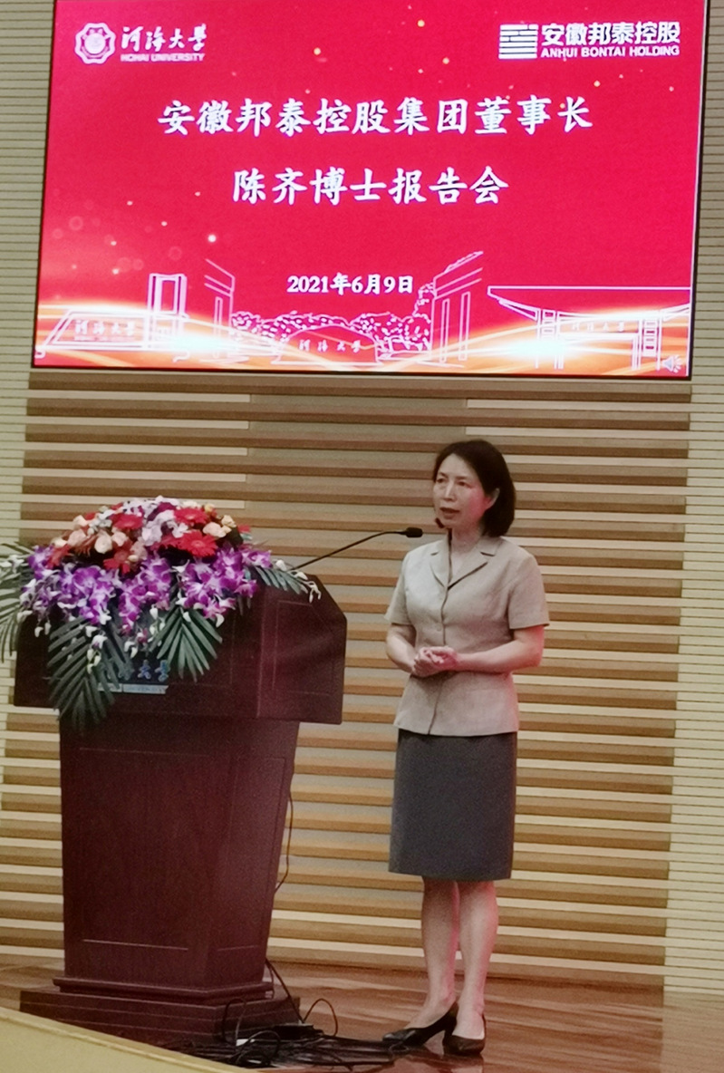 陈菁院长对报告会进行了总结,她称赞陈齐董事长“出走半生,归来仍是少年”,带着一颗赤子之心回国创业,带着一颗赤子之心实业报国,他不畏困难,勇于奋斗的创业精神必将激励和引领同学们更加发奋成才。同时,她对陈齐董事长这次回到母校,以安徽邦泰公益基金会名义捐赠300万元设立开云电竞网安徽邦泰公益基金,支持学校事业发展,助力河海学子成才表示衷心感谢,学院也将不断提升人才培养、科学研究和服务社会的能力,进一步加深与安徽邦泰控股集团公司的合作,携手为国家建设和社会发展贡献更大力量。