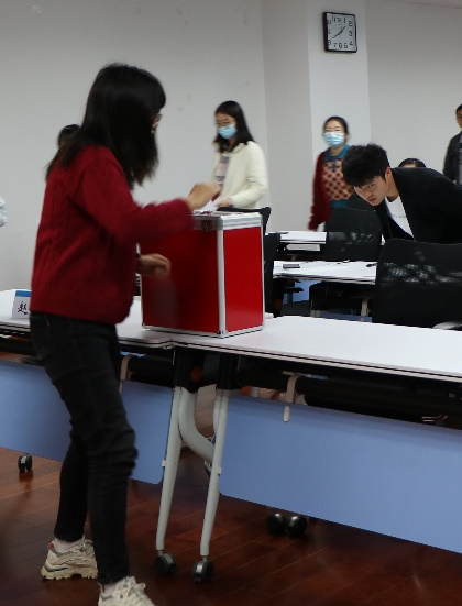 经过紧张的研究生代表不记名投票环节后,本次大会最终选举出祁苏婷、俞湾青、郭澎三位同学组成第四届研究生会主席团,顺利完成换届工作。