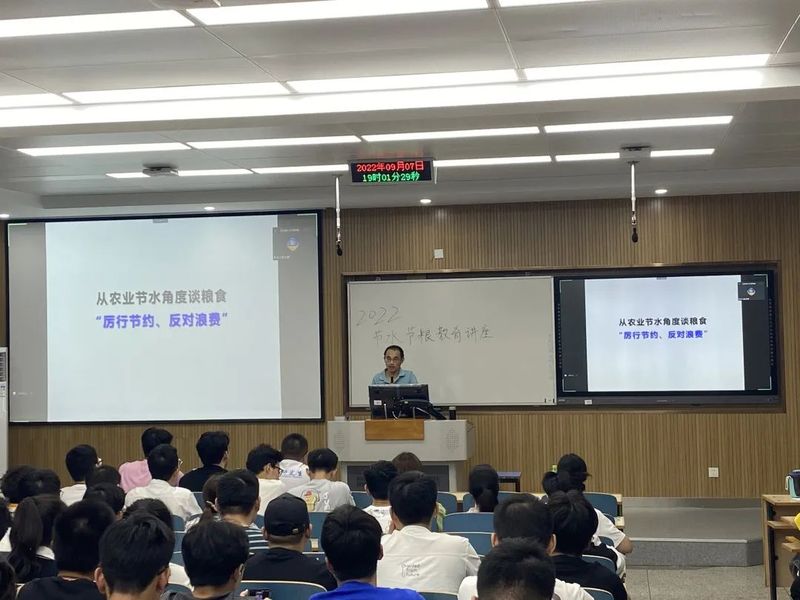 此次节水节粮教育讲座将我国国情、农情、水情与同学们日常生活紧密结合,不仅呼吁同学们提高资源节约意识,自觉养成节约每一粒粮、每一滴水的良好习惯,为资源节约和农业可持续发展贡献自己的力量。也从国家需求角度讲述农业水利学科专业和研究方向的重要意义,增强了同学们对所学专业的了解、认可和信心。此次讲座在热烈的掌声中圆满结束。