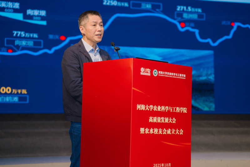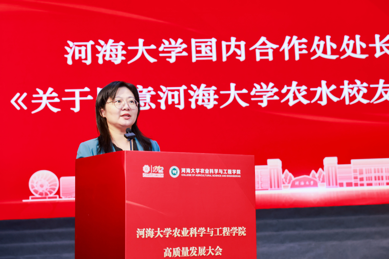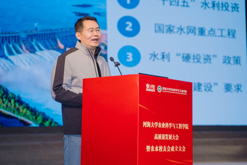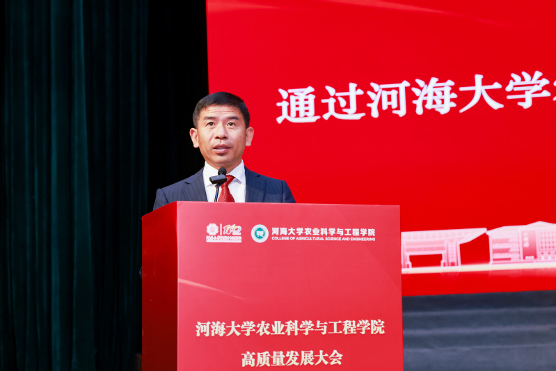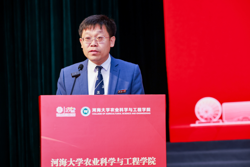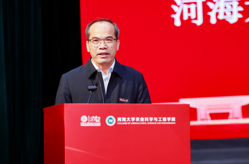 郑金海在致辞中指出,农业科学与工程学院的发展历程是学校服务国家战略的生动缩影,学院在人才培养、科技创新和社会服务等方面作出重要贡献。他强调,面向数字化、智能化的时代浪潮,学院要大力推进人工智能、大数据、数字孪生等前沿技术与农业水利的深度融合,为传统领域注入发展新动能。他向农水校友会的成立表示祝贺,希望校友会筑牢凝聚根基、打造温暖人心的精神家园,架稳联通桥梁、构筑赋能发展的合作平台,勇担“报国”使命、汇聚服务时代的磅礴力量,团结和引导广大校友,聚焦国家粮食安全、乡村振兴等重大战略,在服务中国式现代化、服务“一带一路”倡议等伟大事业中展现河海农水人的担当。