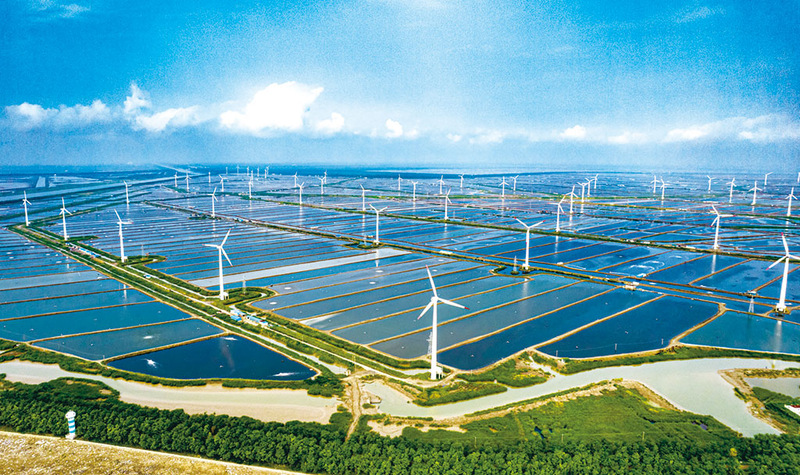 江苏盐城大丰区沿海滩涂“风补渔”产业基地