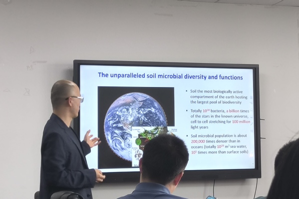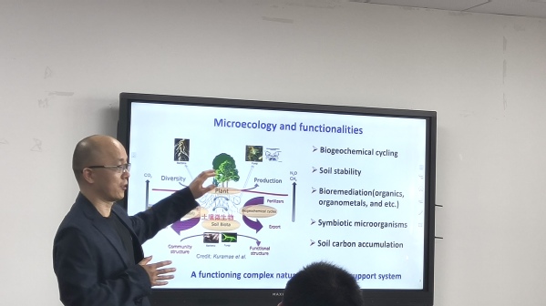 5月8日,学院于行政楼419举办“微生物眼中的界面互作过程及微生态方面”学术报告会。本次报告会特邀中国农业大学土地科学与技术学院王钢教授讲述。报告会由学院副院长佘冬立教授主持。学院老师以及各年级研究生积极参与本次报告会。