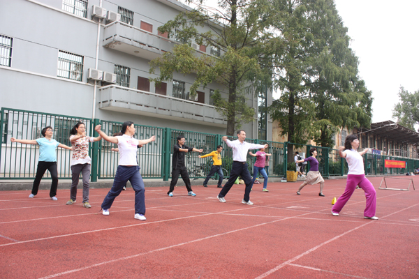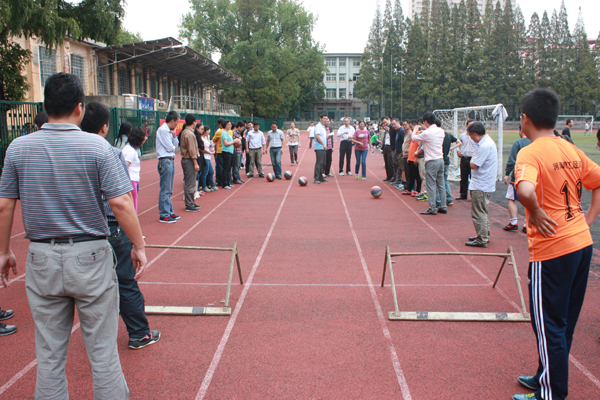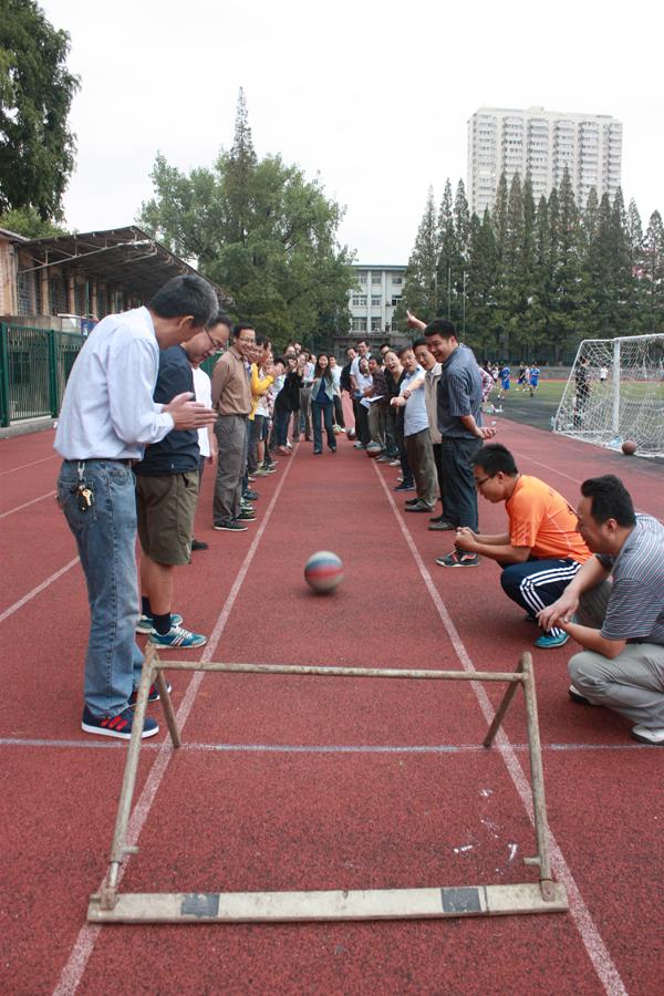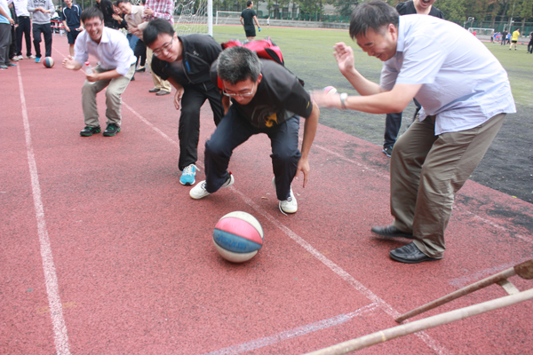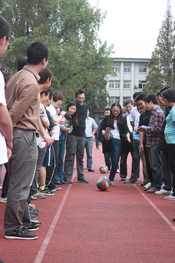 学院的趣味运动会比赛是从教工代表的广播操表演开始的,他们的动作整齐标准,给人美的享受。跳绳是年轻人和女同胞们的强项,学院两办的同事们奋勇争先,得了第一名;定点踢球爆了冷门,两办的女同事们脚下有神功,比分明显超过其他队。大家为了各自的团队能多进球,练了又练,不管谁上场,场外的都是指导教练,那个热闹气氛和看球不进的心情,真恨不能吹上一口气,助上一把力。