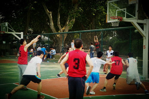 10月11日中午12:00,本部篮球场上人声鼎沸,一派热闹的景象,水利水电学院研究生会“新生杯篮球赛”在这里拉开序幕。水电院全体研究生参加了此次活动。