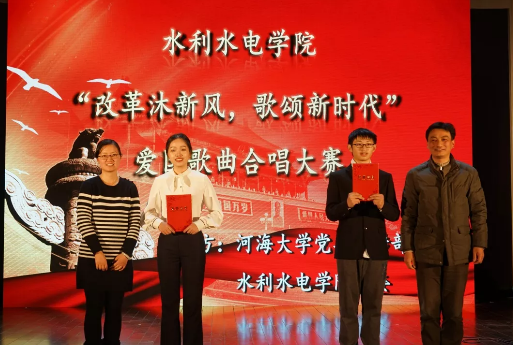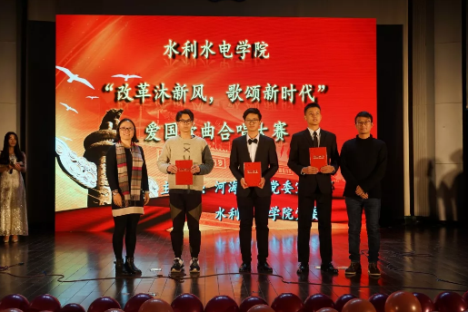 2018年12月9日晚,水电院“改革沐新风,歌颂新时代”爱国歌曲合唱比赛在博学楼报告厅顺利举办。校团委戴媛媛副书记,学院党委任旭华书记、沈振中副院长、戴玉珍副书记,江苏省演艺集团潘超老师、学院全体辅导员、班导师代表和2017级、2018级全体同学参加。