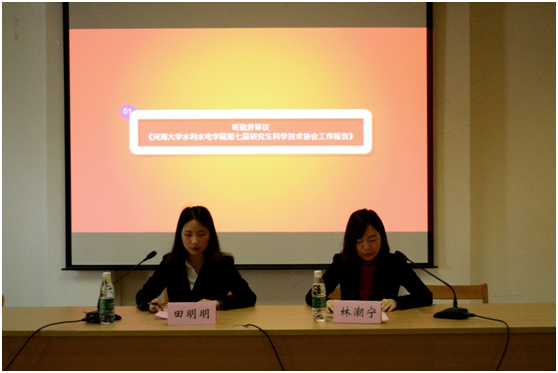 2019年4月25日下午,开云电竞网水利水电学院研究生会第十七次代表大会在水电馆401隆重召开。水利水电学院党委书记任旭华教授、副书记戴玉珍老师、团委书记刘津铭老师、研究生教学秘书周昶老师、研究生辅导员赵志涵老师、陈思思老师莅临本次会议,出席会议的还有校研会代表叶海焯同学,兄弟学院研会代表,水利水电学院第十六届研究生会和第七届研究生科协全体成员,以及各级硕士研究生和博士研究生代表。