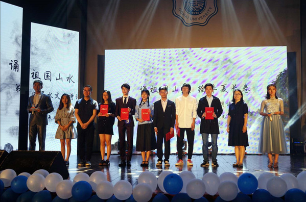 本次大赛分为创作组和朗诵组,吸引了来自各学院近百名同学报名参加。朗诵组共有18名同学进入决赛,决赛分为“水韵芳华,诵响华夏”、“沁闻诗词,博水流深”两个环节。选手们声情并茂、饱含感情的朗诵,讴歌了近年来我国水利事业发展取得的巨大成就及良好的生态环境、人文风情,字里行间表达了对祖国、对水文化的热爱、眷恋之情。同时,让现场观众领略到诗歌朗诵的无穷魅力,生动而真切地诠释了诗歌的内涵,赢来了现场观众的阵阵掌声;创作组有6名同学获奖,来自2017级商学院的方喆君同学凭借作品《满江红·水利中国》摘得桂冠。