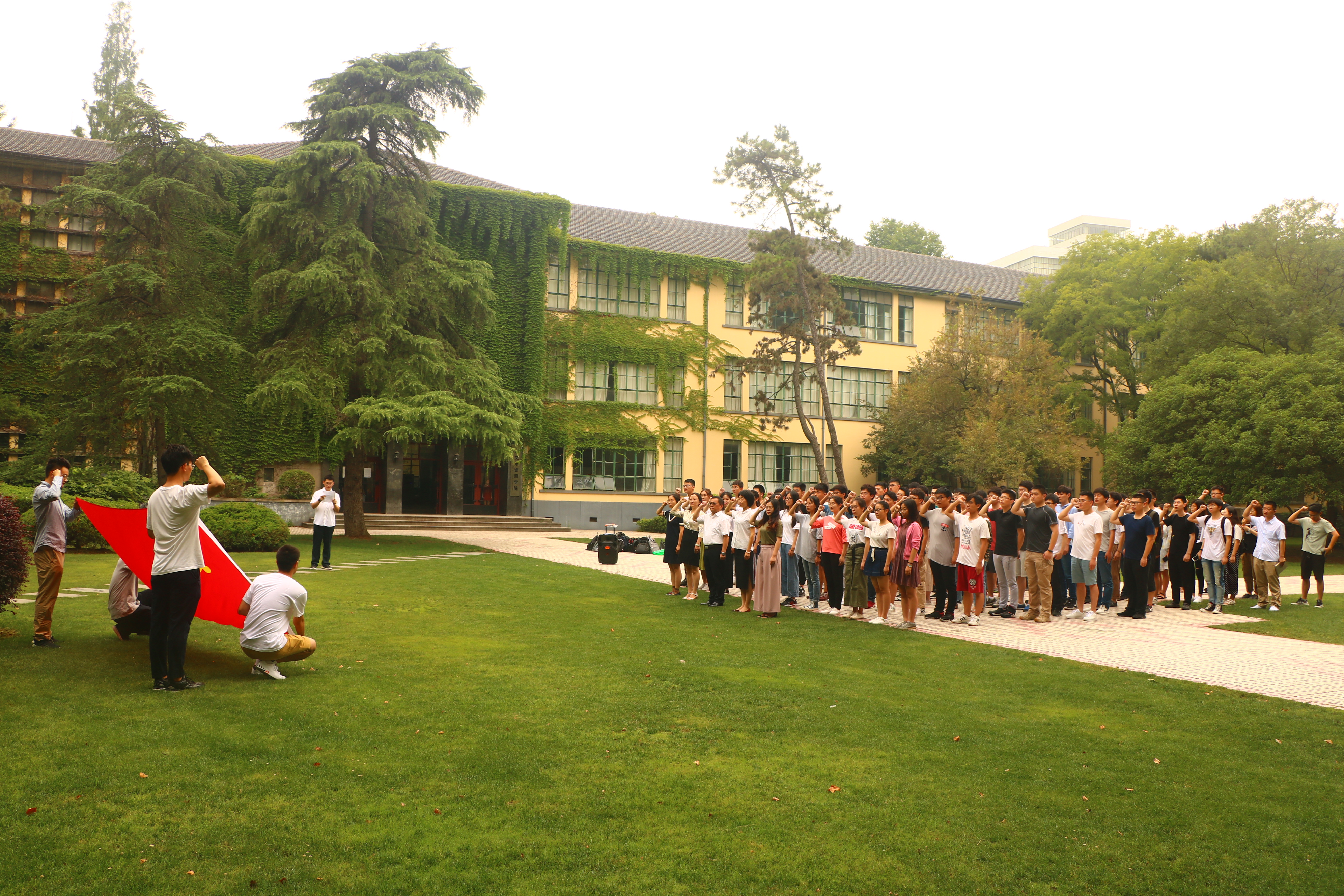 升旗仪式完成后,举行了入党宣誓仪式。在学院党委的带领下,新党员同学和老党员同学一起面对党旗进行宣誓。