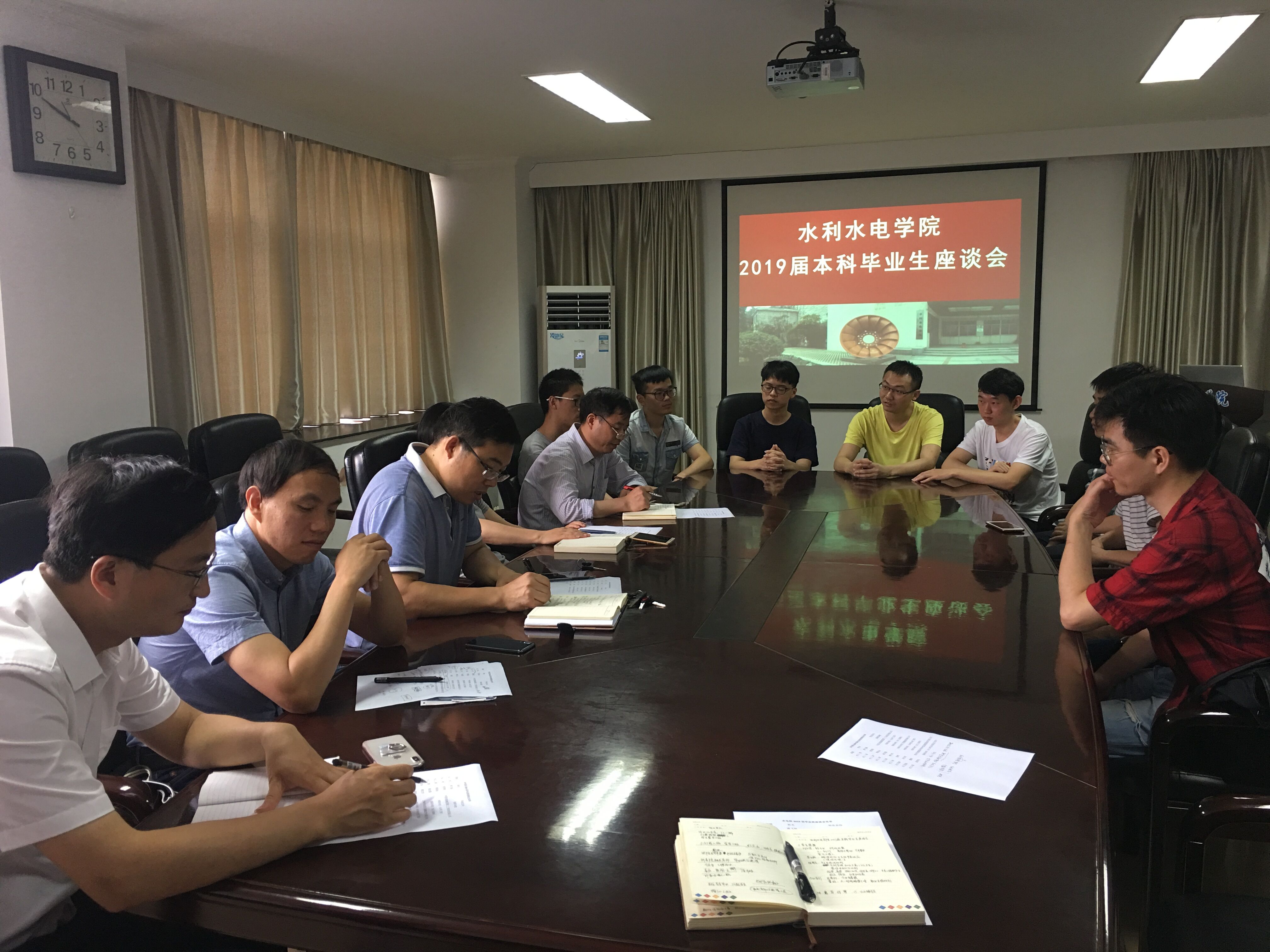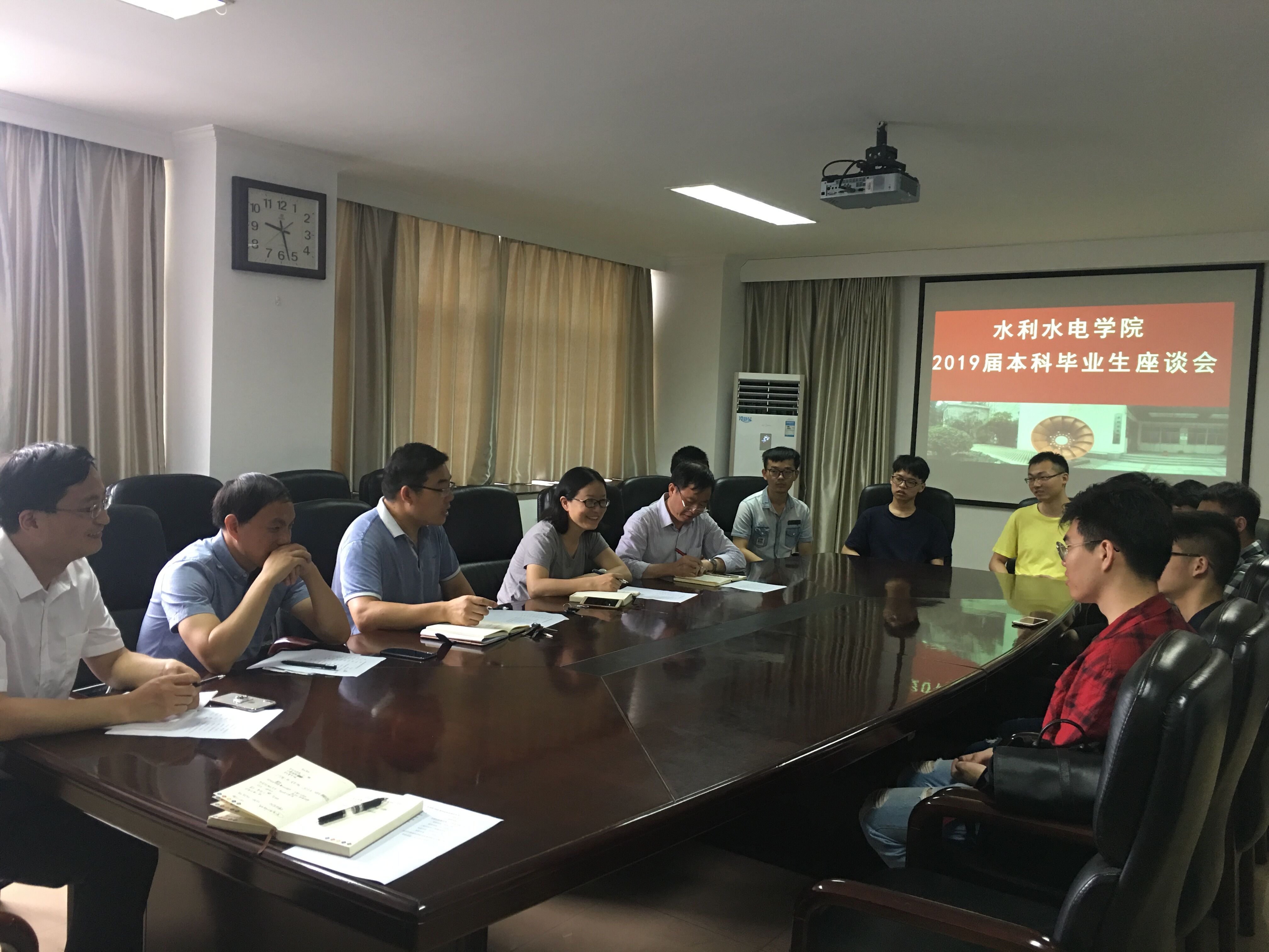 6月18日,我院举行2019届本科毕业生代表座谈会。会议由学院党委副书记戴玉珍主持,学院副院长张继勋、水电系主任蔡付林、副主任岑威钧、专业办主任徐磊,15、16级辅导员和2019届本科毕业生代表参会。