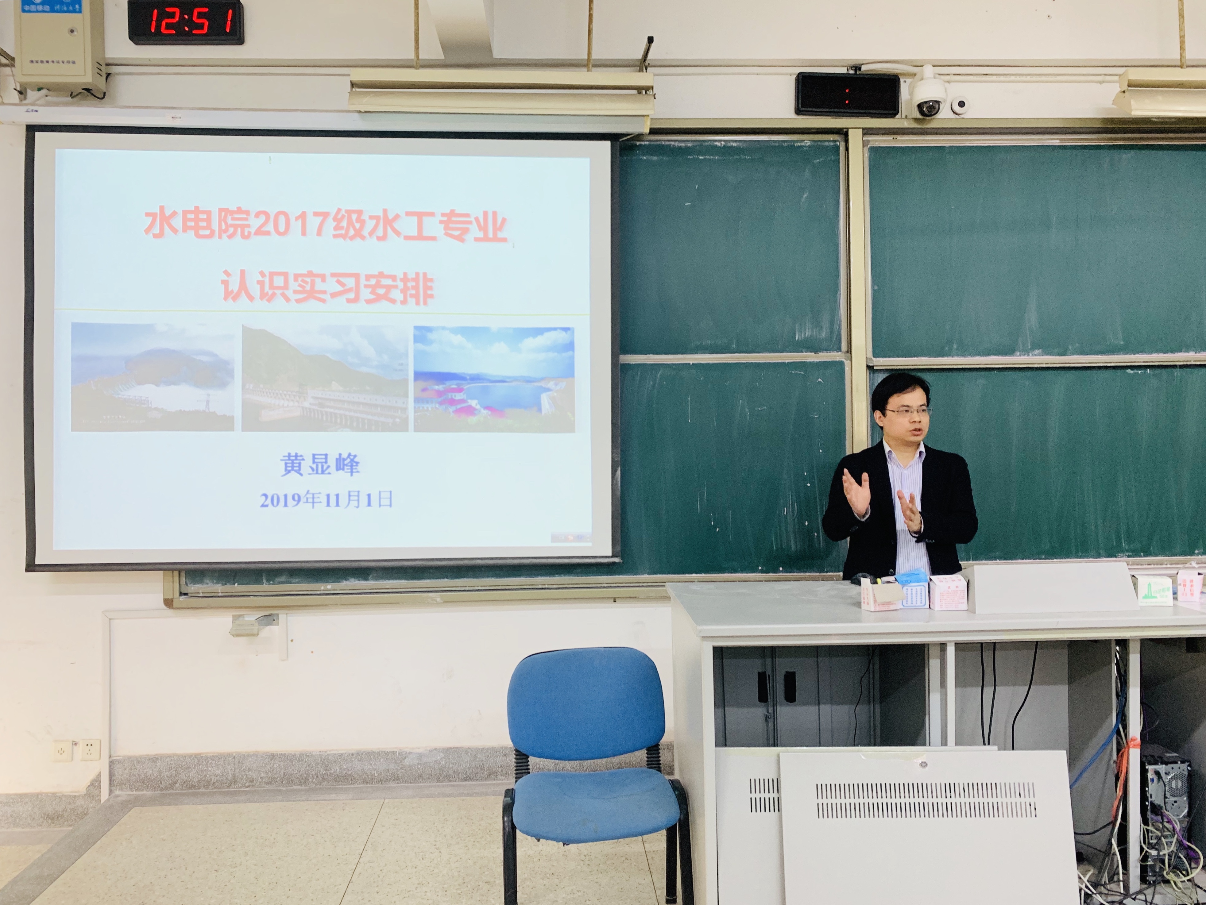 蔡付林主任从专业的角度向同学们介绍了实习的目的、意义和要求,鼓励大家在实习过程中磨炼意志,展现我院学子不怕苦、不怕累的精神面貌;同时,蔡主任也告诫同学们恪守纪律,服从组织安排。黄显峰老师通过文字图片详细介绍了本次认识实习的行程安排、考勤制度、成绩考核方式以及新安江水电站、富春江水电等实习地点的情况。刘津铭老师针对一些细节进行了补充,向同学们部署了车辆与住宿等方面的安排。