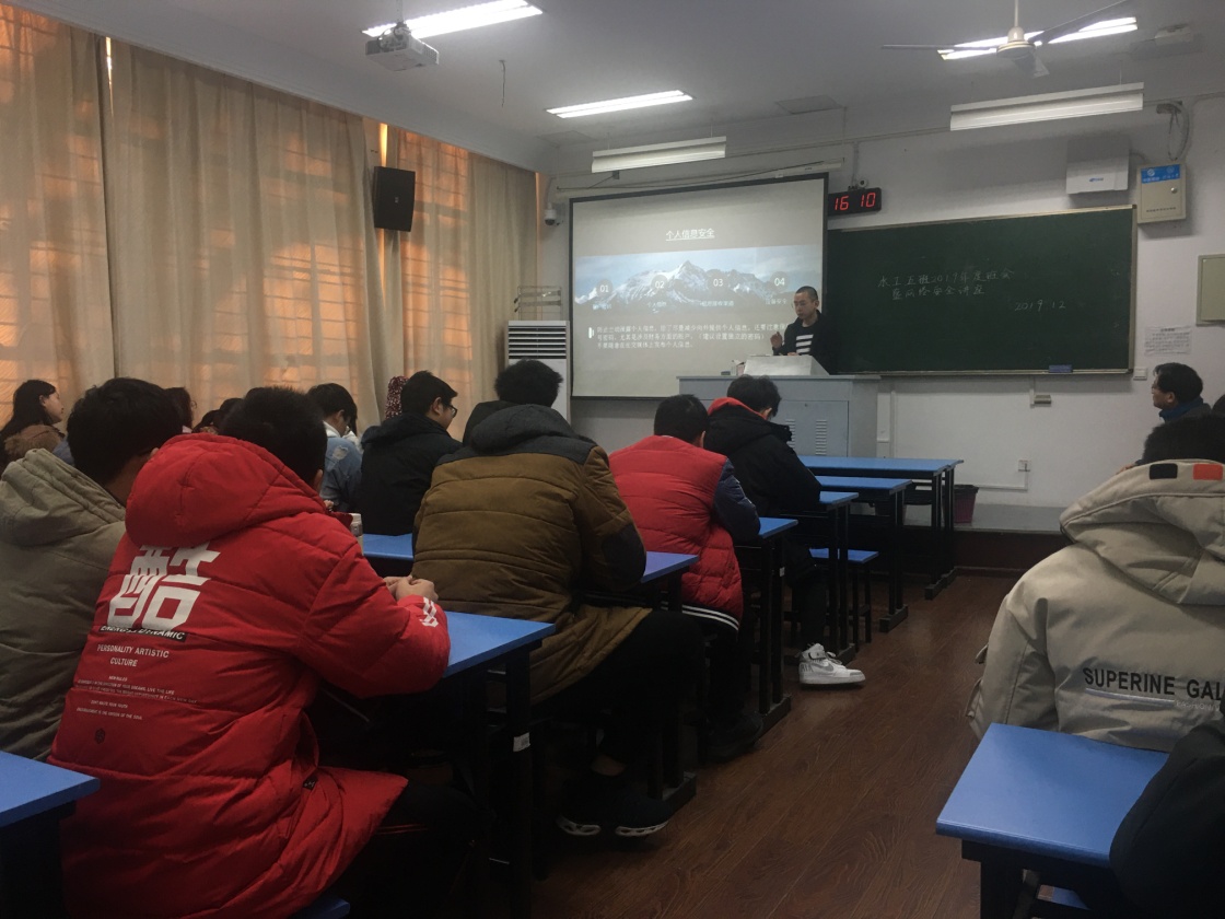 12月31日,2016级水工五班举办“安全记心中”安全教育主题班会,班导师岑威钧老师、班级全体同学参加。