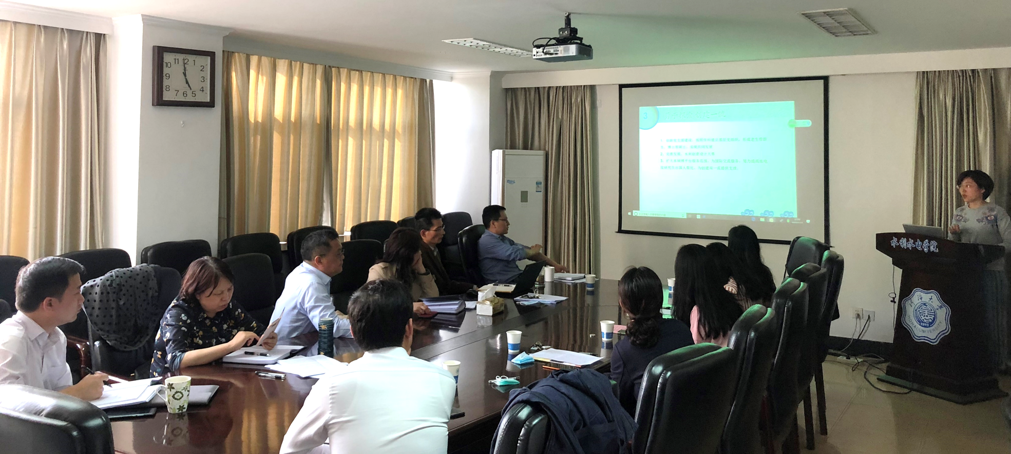 5月11日,水利水电学院召开辅导员工作专题汇报会,集中听取辅导员2019年工作汇报,明确目标进一步推动学院学生工作。院党委书记任旭华,院长王媛,副院长方国华、王建、辛沛,院党委副书记王方及全体辅导员参加会议。王方副书记主持会议。