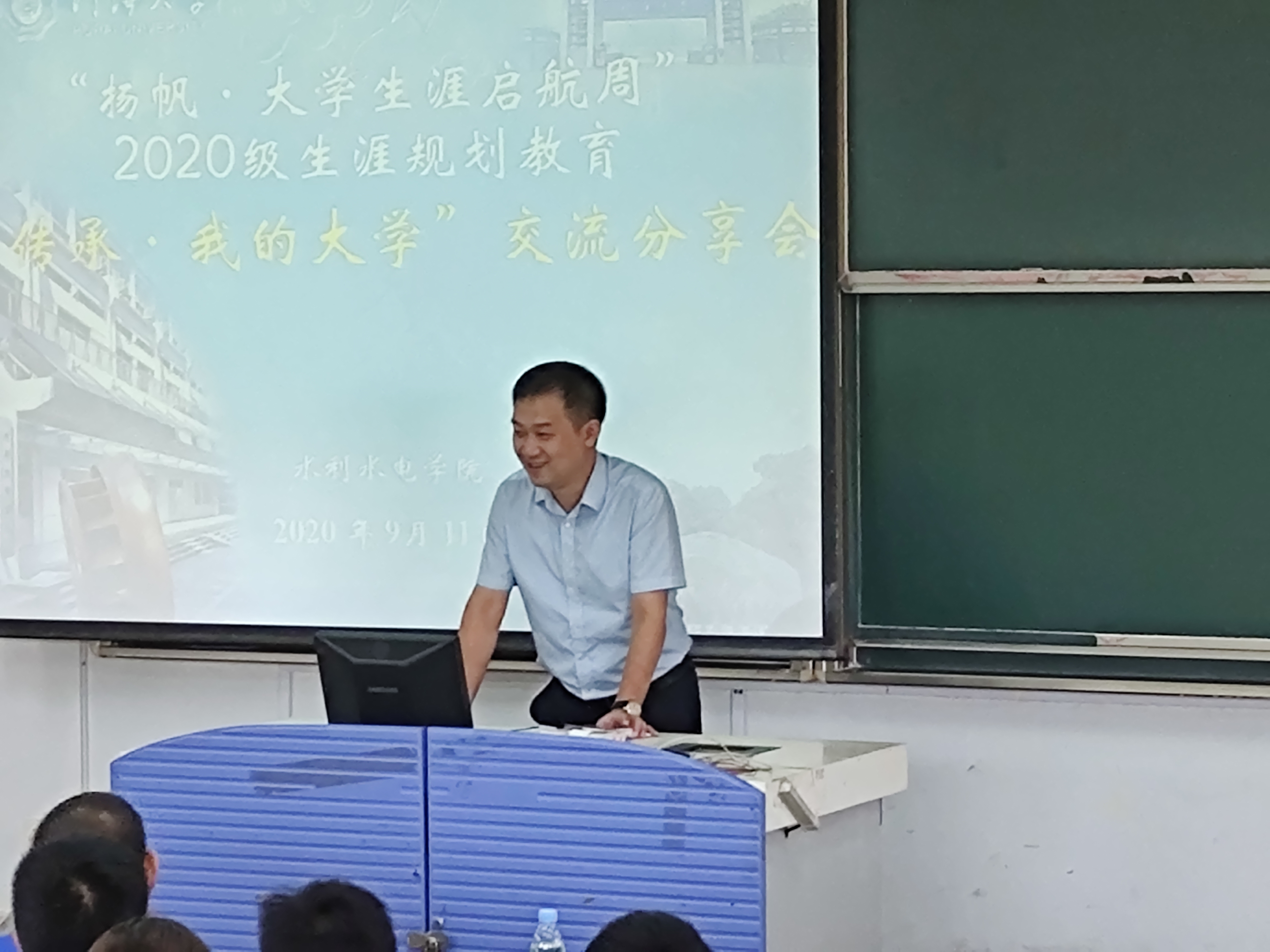 9月11日,2020级扬帆·大学生涯起航周活动之“传承·我的大学”交流分享会在江宁校区高B201如期举行,2020级全体同学以及辅导员参加分享会。分享会邀请我院2003届校友、南京市水务局基本建设和科技处副处长施丛丛,三峡电能(湖北)有限公司副总经理卞韬略主讲,院党委副书记王方主持。
