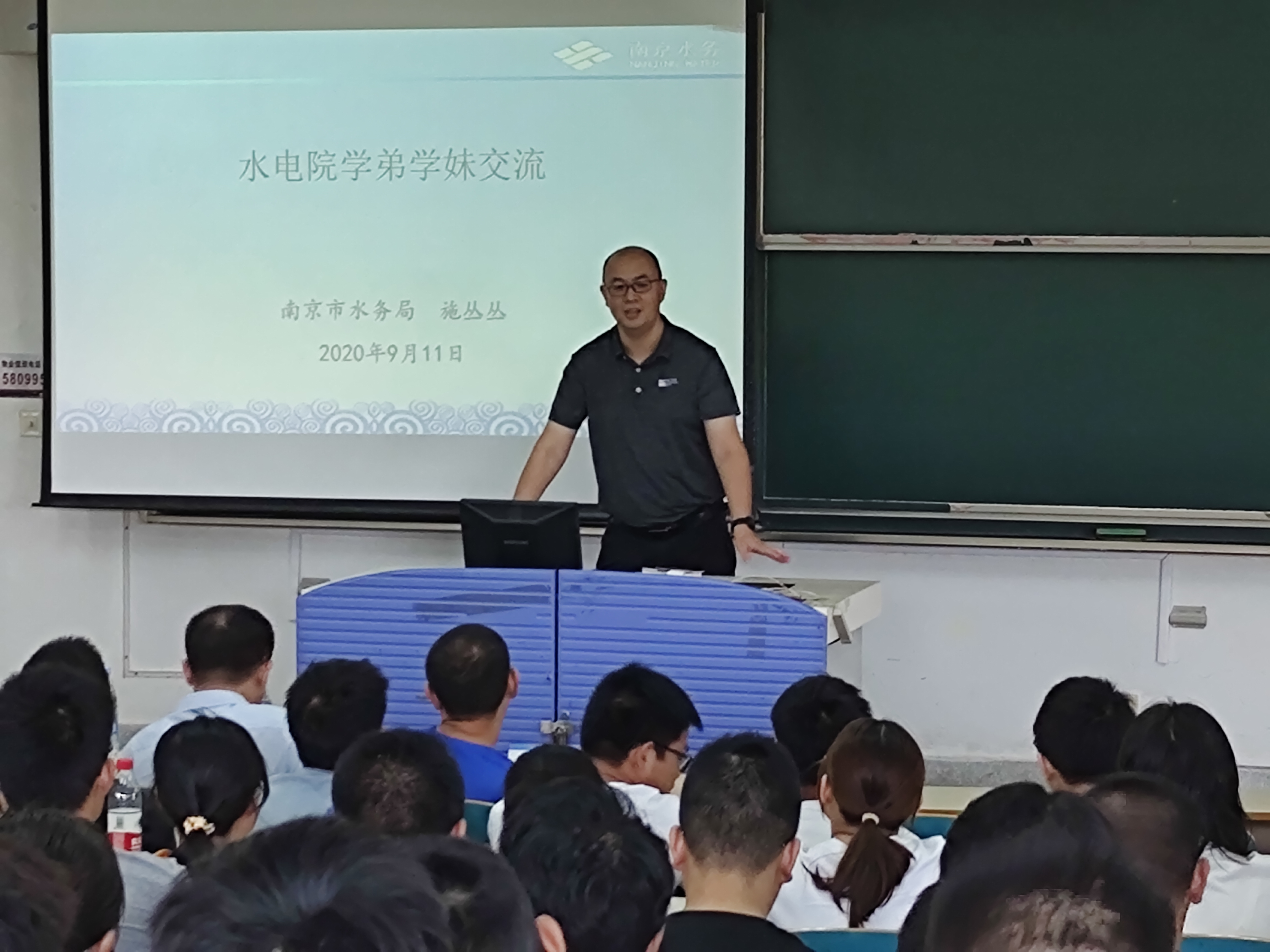 校友施丛丛以水工专业学长的身份,从水工专业的就业选择、水工就业前景、水利需要什么样的人、大学学习生活的几点建议四个方面,与学弟学妹们分享了自己的学习、工作经验。施丛丛校友特别提到在近期洪涝情况下,国家为做好水灾害防御,解决水环境水生态问题,对水利行业具有较高需求,水工专业就业前景极为广阔,并在国家发展中具有重要地位。