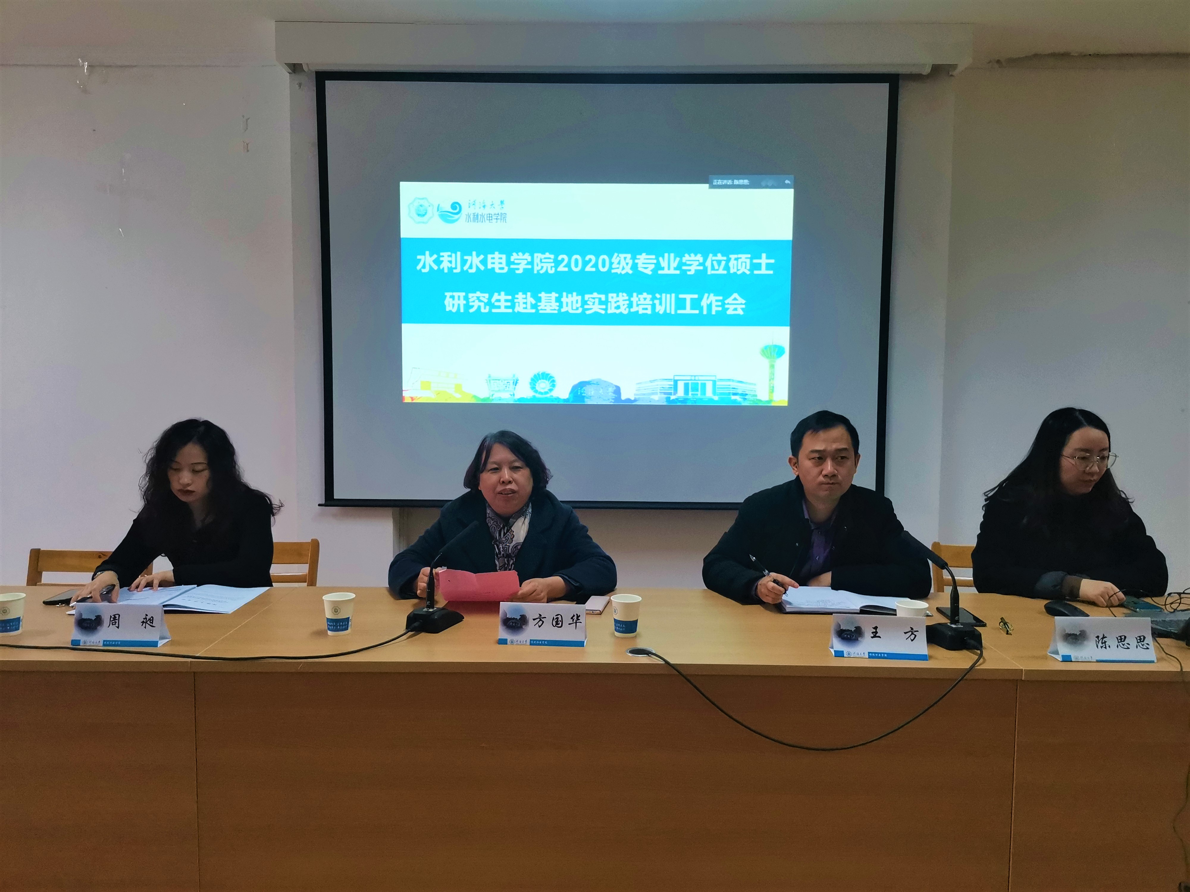 1月20日,我院召开2020级专业学位硕士研究生赴基地实践培训工作会,副院长方国华、党委副书记王方、教学秘书周昶、研究生辅导员陈思思及2020级专业硕士研究生在线上线下参加此次培训工作会。会议由王方副书记主持。