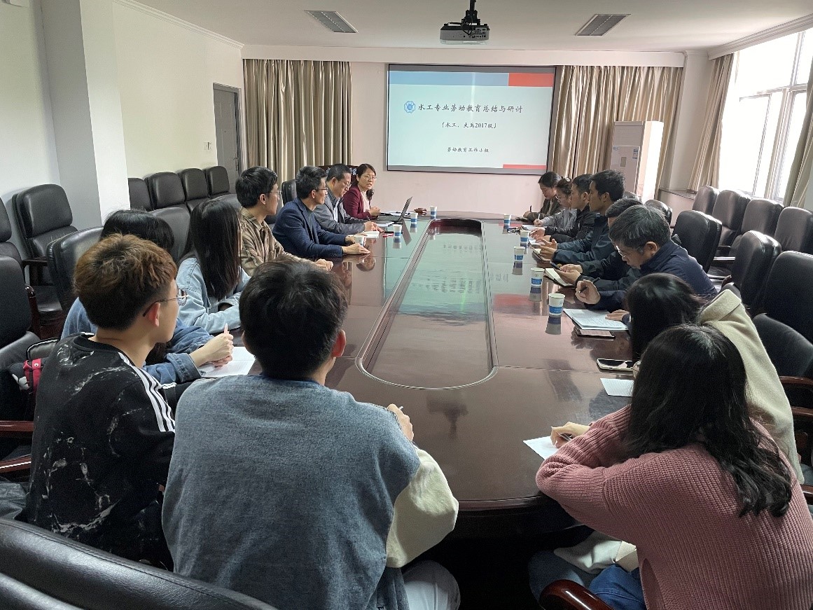 我院“劳动教育”课程采用与实验室教学科研仪器的清洁、保养、演示相结合的方式,具有水电院特色。交流研讨前,水利水电工程系副系主任李晓英老师对我院第一次“劳动教育”课程的内容设置、课程安排以及课程具体实施的情况做了详细介绍。