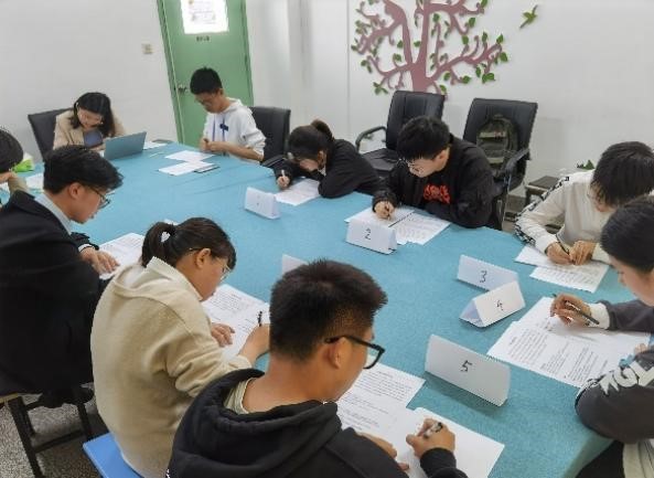 本次选拔包括笔试、结构化面试、无领导小组讨论三个环节,14名同学报名参与此次选拔。笔试部分由学校统一出题,考查学生对党和国家各项路线、方针、政策的认识,对时事政治和校内大事的关心程度以及思想品德考察等方面。面试环节中,学生通过抽签分为两组。结构化面试分为两分钟的自我介绍和三分钟的情景题回答,题目围绕学生工作中容易出现的问题,对候选人的思想政治、工作经验、工作能力等方面进行考核。无领导小组讨论通过独立思考、观点陈述、思想碰撞、拟定答案、代表总结五个阶段全面考察。选拔过程中,评委通过评估面试者的自信程度、进取心、情绪稳定性、反应灵活性等个性特点,对思维方式、合作意识、组织沟通、领导力等团队工作技能进行综合考察。