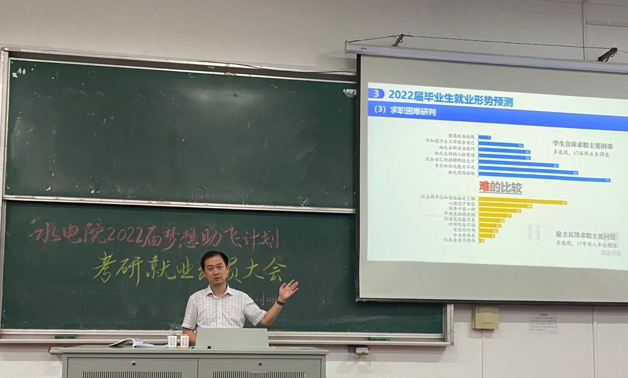 6月21日我院召开了“水电院2022届毕业生梦想助飞计划”考研就业动员大会,水利水电学院副院长方国华、水利水电学院党委副书记王方、水利水电学院学科学位秘书柳璐出席会议,2018级本科生全体参加会议。大会由水利水电学院2018级本科生辅导员姜帆主持。