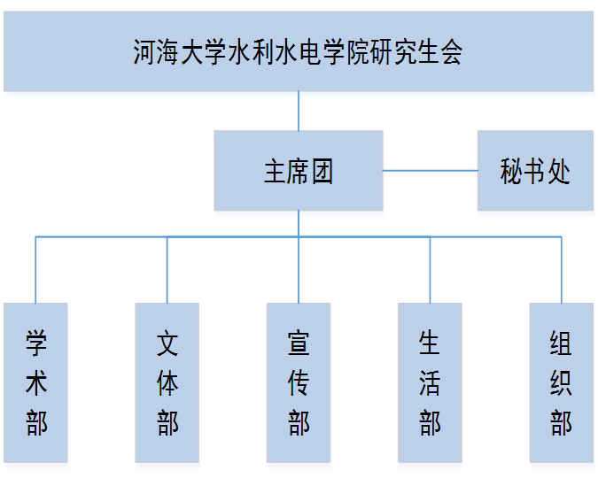 水利水电学院研究生会是由院党委和校研究生会领导,在院团委指导下开展学院各类研究生活动。下设有主席团、秘书处、学术部、文体部、宣传部、生活部、组织部七个职能部门。