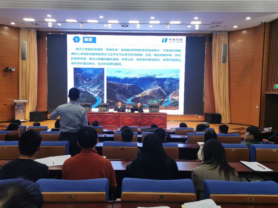 马院士首先就澜沧江水电梯级开发取得的辉煌成就进行了介绍,从上游云南段的开发,到中下游以小湾、糯扎渡为代表的“两库八级”建设,梯级水电站运行效益十分显著,极大地推动了我国新型能源结构的调整。随后,马院士分享了澜沧江水电开发过程中取得的创新技术成果,从小湾双曲拱坝、糯扎渡心墙堆石坝、黄登碾压混凝土重力坝三座工程入手,讲述了工程建设过程中面临“高陡边坡、高地应力、高地震烈度”等一系列前所未有的困难与挑战,阐述了众多科技人员攻克的多项“卡脖子”技术难题。他指出,澜沧江水电开发工程实践形成了世界高水平的技术体系,获得了国际里程碑工程奖、国家工程优质金奖、詹天佑奖、菲迪克奖等重大奖项,标志着我国高坝建设技术已处于国际领先地位。最后,他结合习近平总书记新时代系列讲话精神和“碳达峰碳中和”目标,对澜沧江西藏段的水利事业发展提出了展望,激励河海青年要顺应时代潮流、书写青春力量,牢记“科学研究可以有失败,但是工程不允许失败”的严谨态度,努力“把论文写在祖国大地上”。