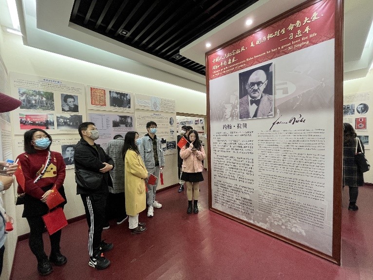 下午一时,支部来到位于南京大学拉贝与国际安全区纪念馆(拉贝故居)进行参观,支部成员王沁怡负责为大家讲解。拉贝故居因抗日战争南京大屠杀时期约翰·拉贝先生为善良与苦难的中国人民建立难民收容所而闻名。整个故居氛围庄重,真实记录了日军在南京大屠杀中的暴行,故居中的点滴记忆保留了新时代中德两国之间良好的文化交流,也向支部党员展示了拉贝先生伟大的人性光辉和无私的人类之爱。