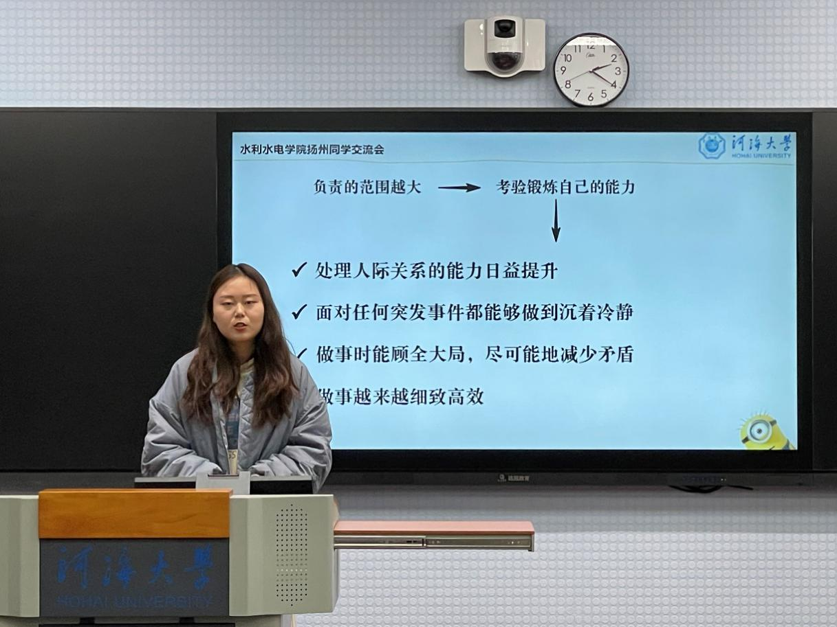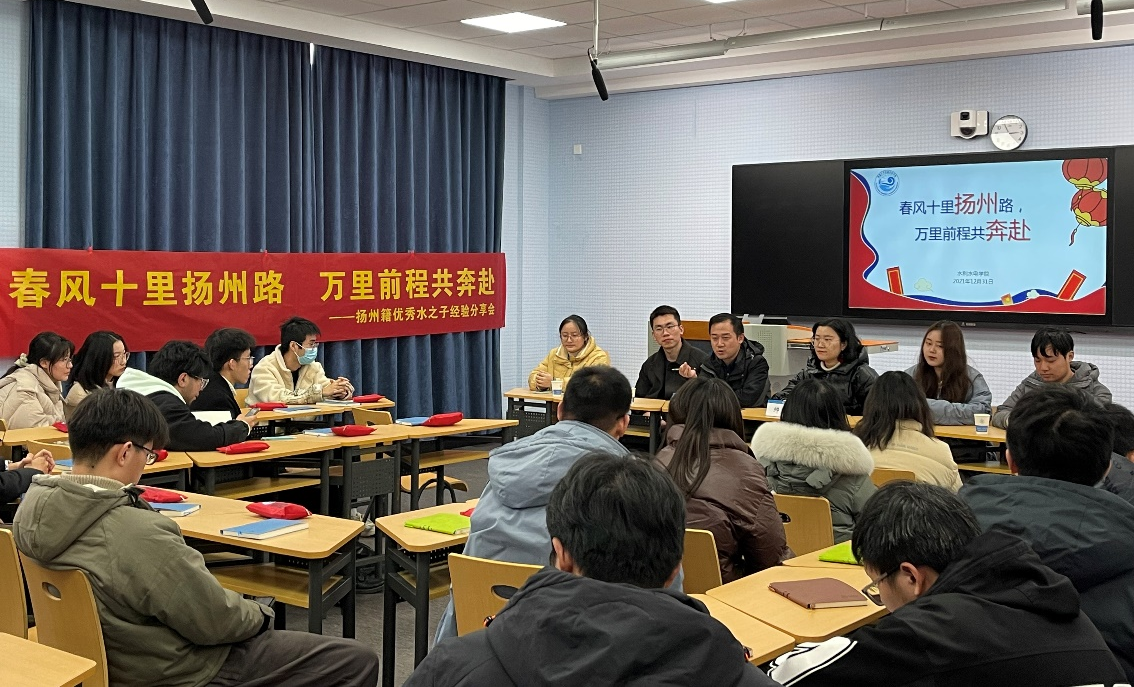 12月31日,我院召开“春风十里扬州路,万里前程共奔赴”扬州籍学生交流会暨水电院2022年“源泉工程”寒期社会实践专题动员会。院党委副书记王方,本科生辅导员帅雨婷、侯开智及40余名来自各个学院的扬州籍本科生参加会议,会议由帅雨婷主持。