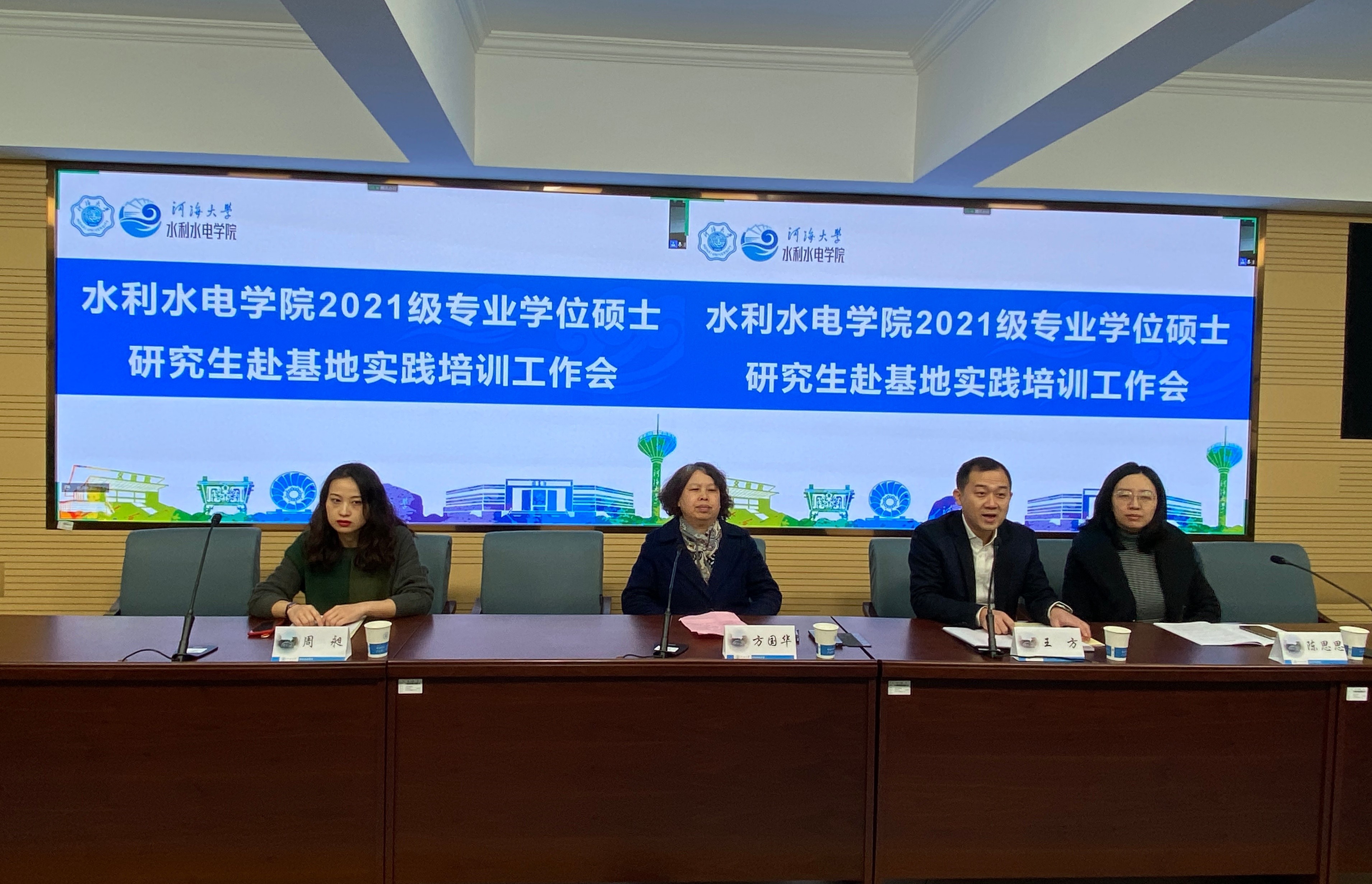 1月11日,我院召开2021级专业学位硕士研究生赴基地实践培训会,副院长方国华、党委副书记王方、教学秘书周昶、研究生辅导员陈思思及2021级专业硕士研究生在线上线下参加此次培训工作会。会议由王方副书记主持。